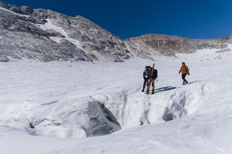 Glaciologists at the bedside of the Ossoue Glacier in the Pyrenees