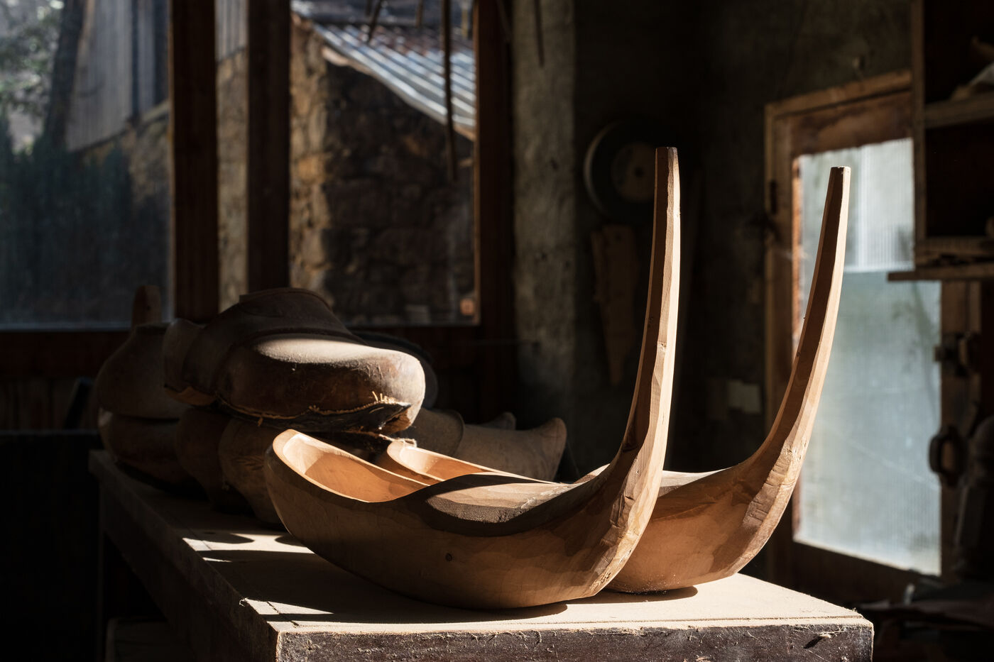 In his workshop, which overlooks the mountains, Pascal maintains an ancient craft: Bethmale clogs. Recognisable by their long, tapering toes, they are worn by the valley's folk dancers and are the delight of collectors and museums. Pascal also makes clogs for gardening and small objects such as pencil holders and corkscrews. He also organises guided tours of the workshop for schools, businesses and tourists. This diversification is essential to the survival of his craft. And to the survival of a technique of which he has been the sole guardian for forty years. But not for much longer...