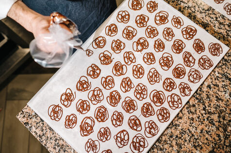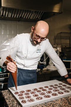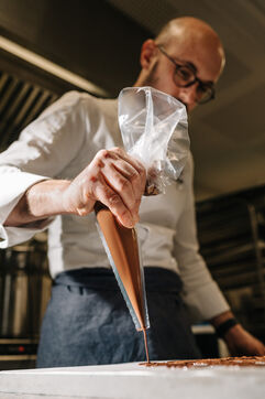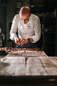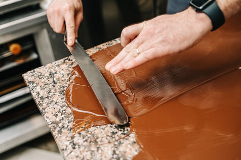 Rémi Touja, patissier à Carcassonne, travaille le chocolat dans son laboratoire. Il a obtenu le titre de Champion de France de dessert en 2013. A l'approche des fêtes, la demande est en forte croissance.