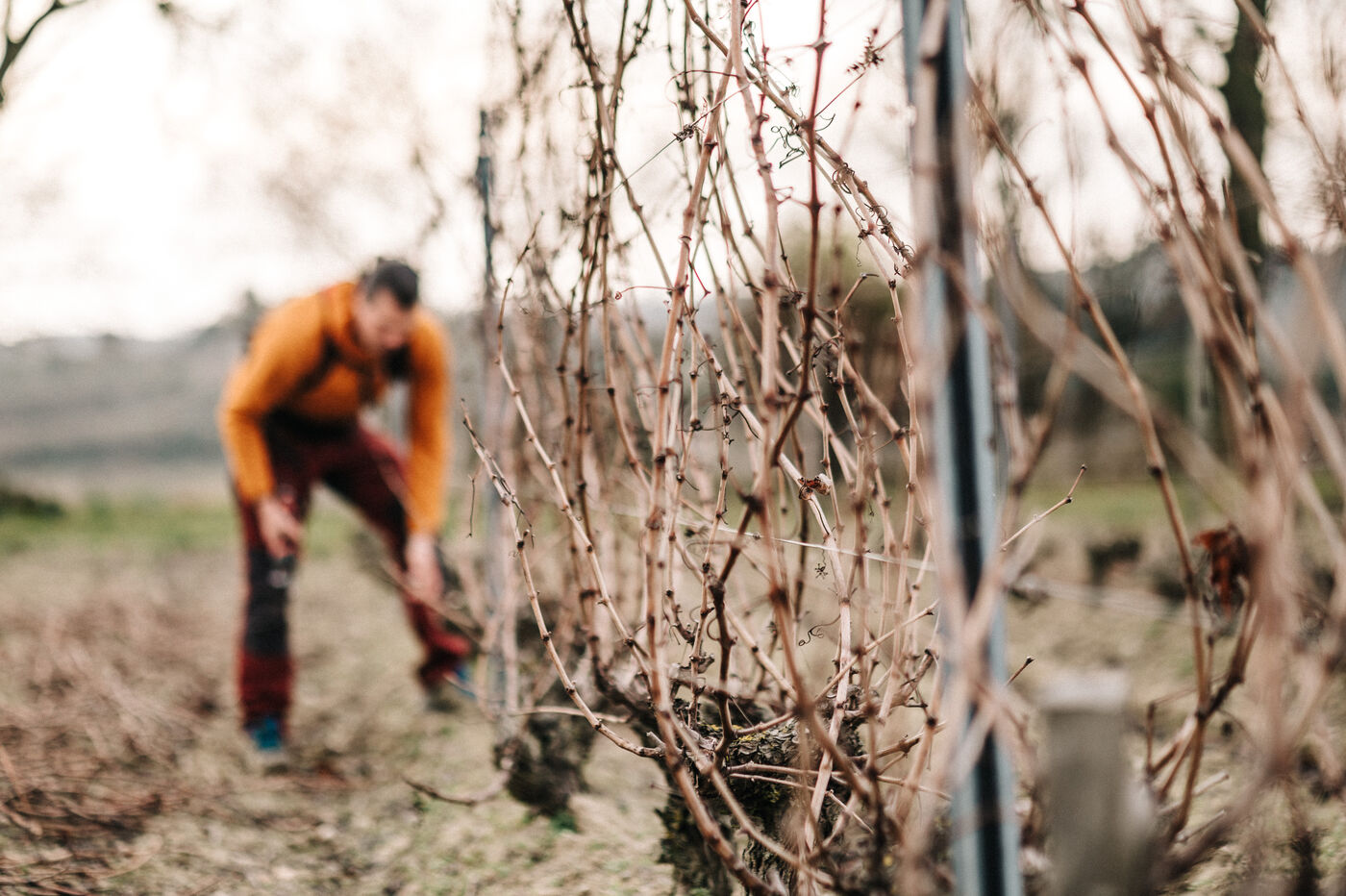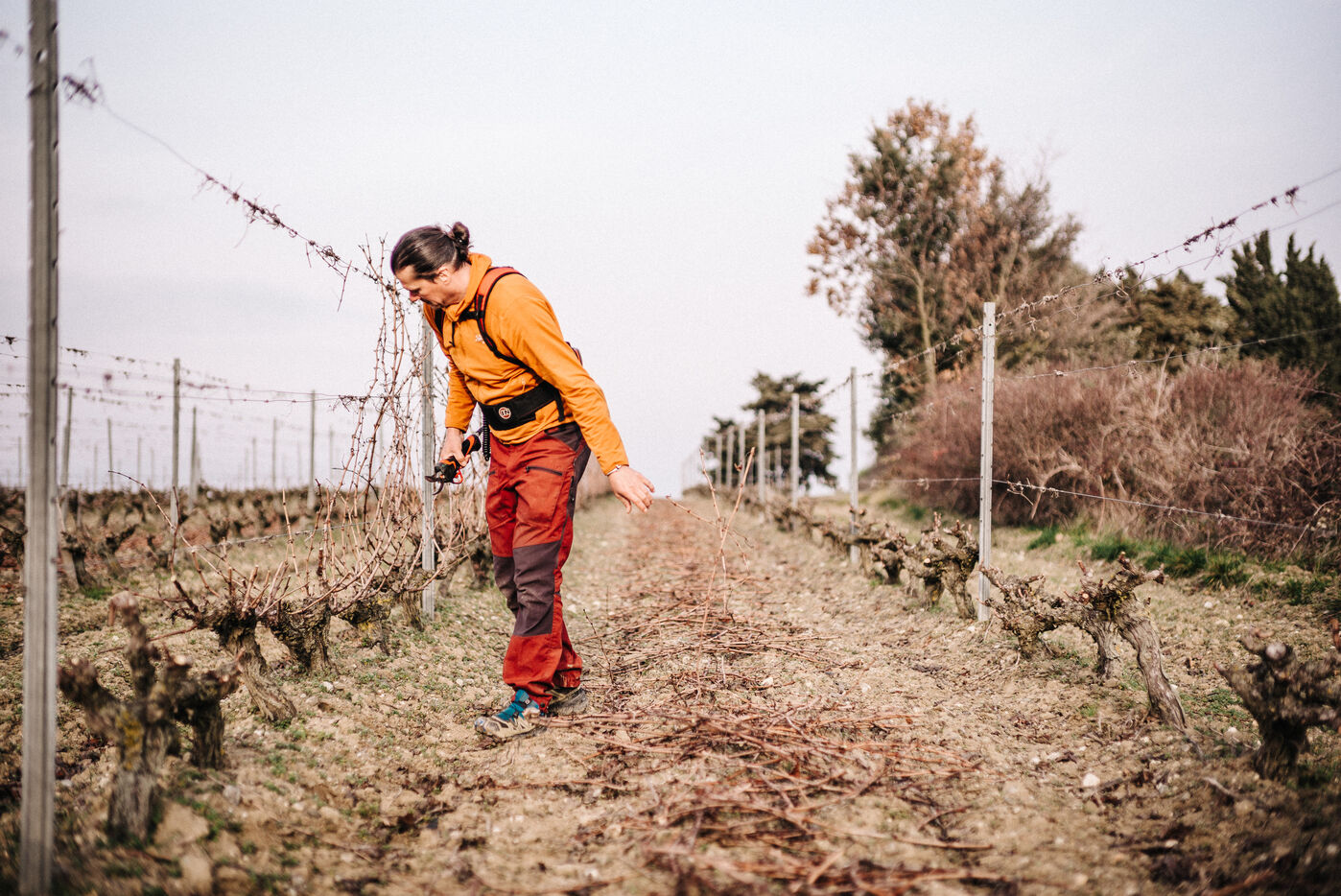 Frédéric Palacios from Domainde de mon Père (AOP Malepère) prunes the vines. With his approach to viticulture, he is one of the forerunners in the world of natural wines in the Aude.