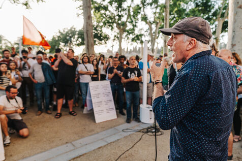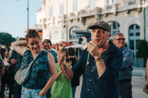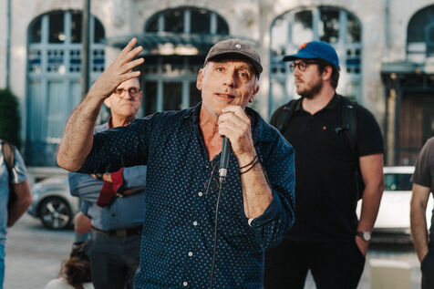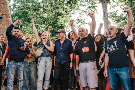 Meeting in Carcassonne of Philippe Poutou, spokesman for the NPA, candidate in the 2024 legislative elections in the first constituency of Aude for the Nouveau Front Populaire.