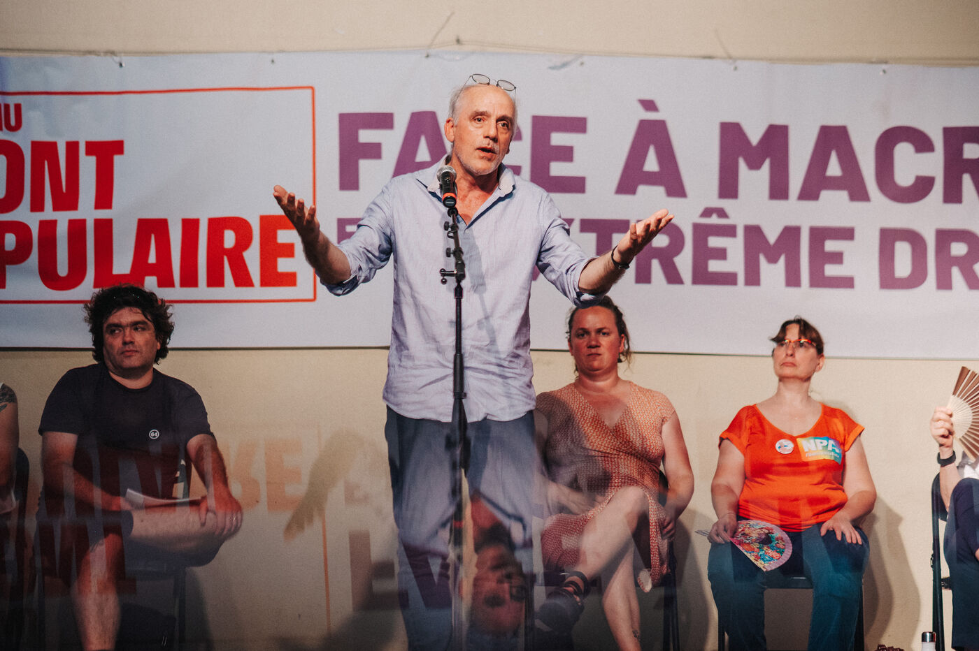 Philippe Poutou Candidate in the first constituency of Aude for the Nouveau Front Populaire at a meeting in Marseillette.