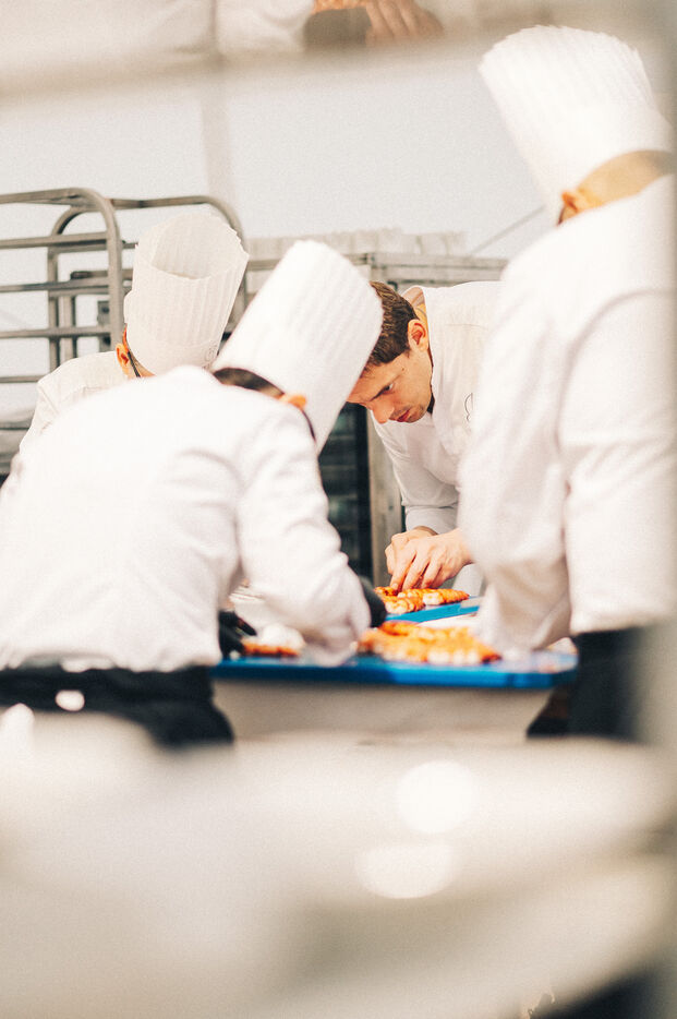 Chef Fabien Ferré, 3 Michelin stars, in full concentration at the Toques et Clochers 2025 gastronomic meal in Limoux.