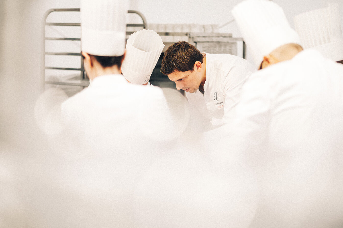 Le chef Fabien Ferré, 3 étoiles au guide Michelin en pleine concentration lors du repas gastronomique de Toques et Clochers 2025 à Limoux.