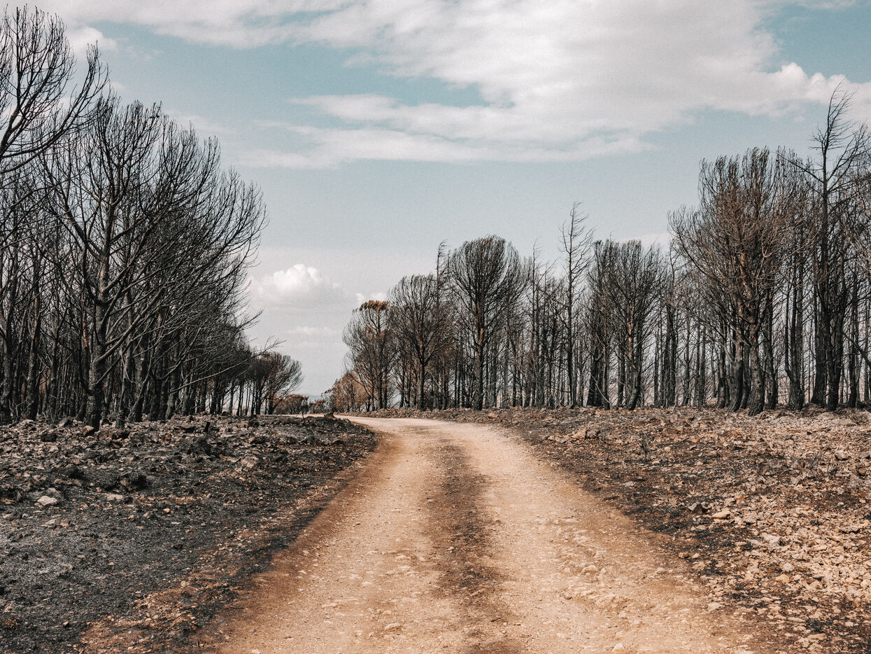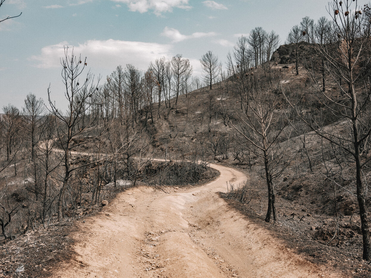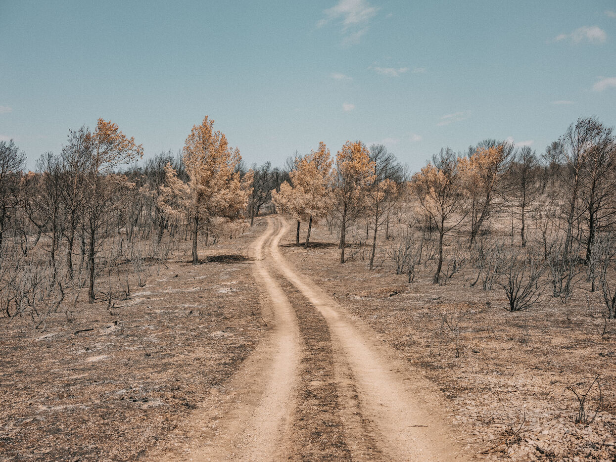 Landscapes of the Corbières Massif after the fires of August 2025. 17,000 hectares were burned in a few days, making this the largest fire in France in 80 years.