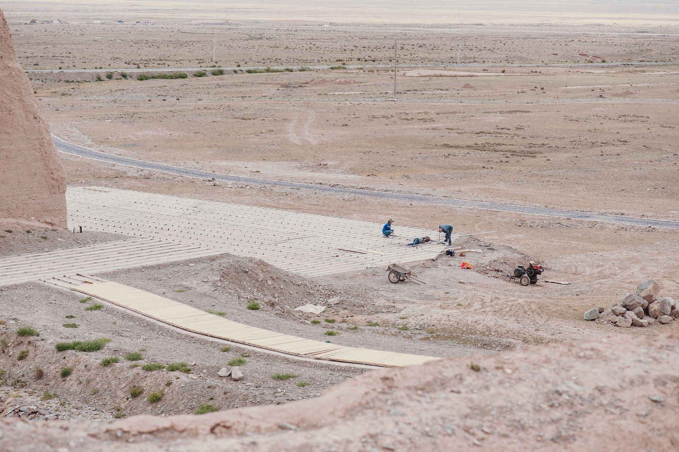 Ici, ce n'est pas encore le désert et pourtant c'est tout comme. La poussière, le sable et les pierres semblent manger la lumière et les couleurs. Que sont devenues les forêts qui descendaient des montagnes jusque dans la plaine et qui entouraient Yongtaï ? Où sont passés les arbres dans les ruelles sous lesquels il était bon de profiter d'un peu de fraîcheur l'été ?