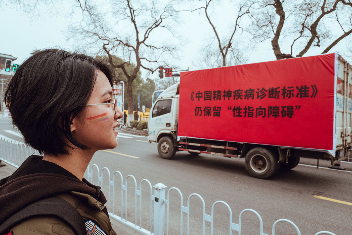 Wu Qiong therefore had the idea of marching through the streets of 8 major Chinese cities in a procession of 3 trucks with slogans posted on them to raise public awareness of this problem: "Treat a disease that does not exist", "Sexual orientation is still part of the criteria for diagnosing psychiatric illnesses", "Homosexuality was officially removed from the list of mental illnesses 19 years ago. Why is this still happening?".