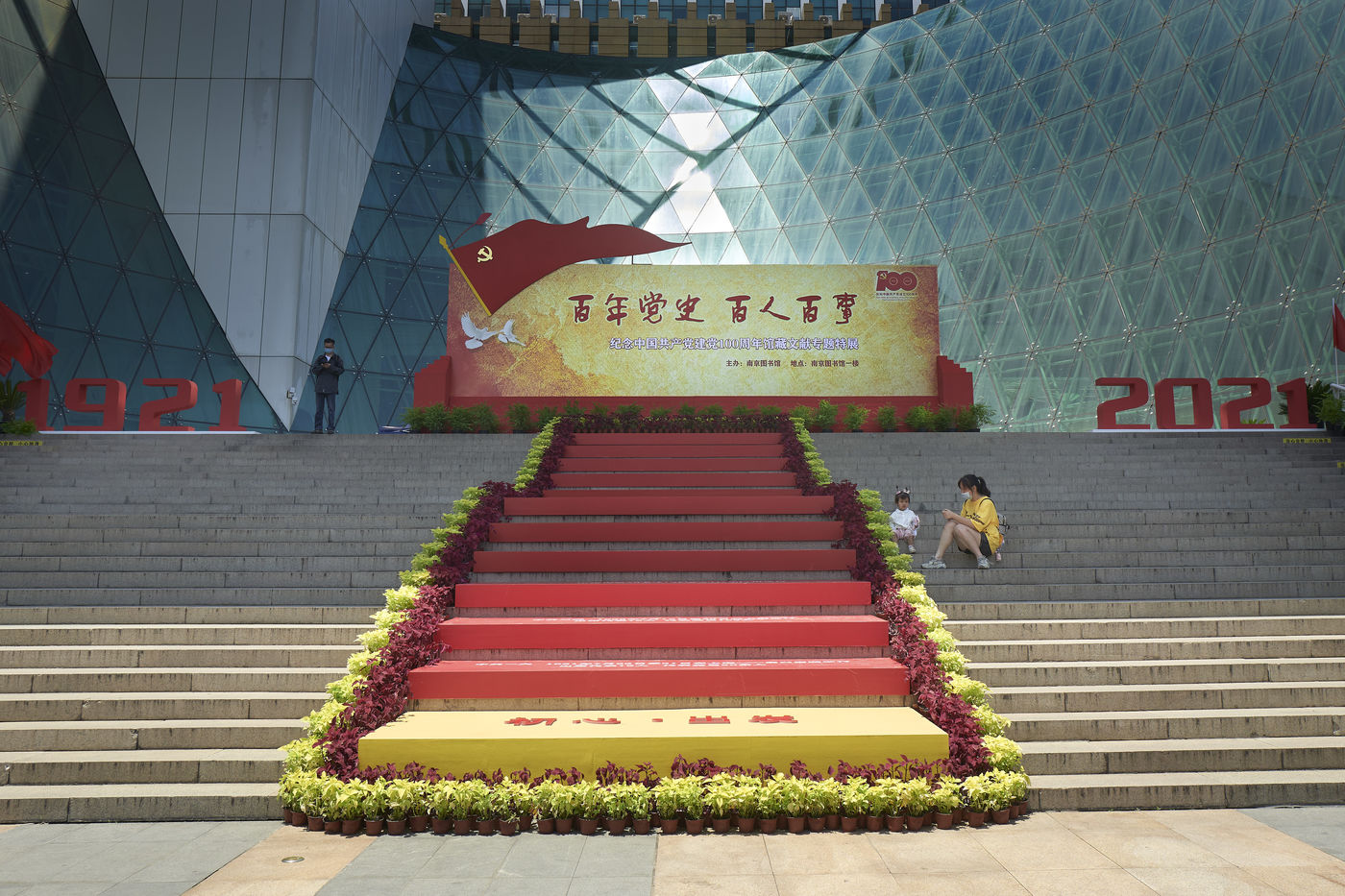 Installation in front of the Nanjing municipal library for the centenary anniversary of the creation of the Chinese Communist Party.