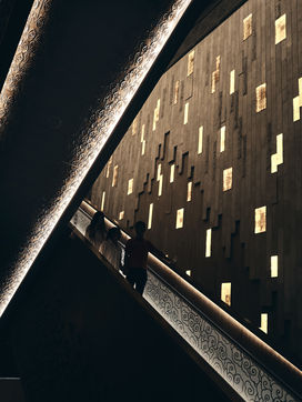 Pour ressortir nous empruntons les mêmes escalators que pour descendre, eux aussi bien entendu recouverts de bois sculptés. Et ce n'est qu'une fois arrivés à l'air libre après 2 heures de visite que l'on referme enfin la bouche, tant la stupeur provoquée par cette ostentation a été intense !