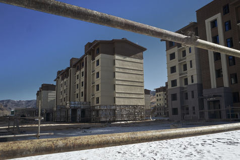 Juste a cote des pistes, un ensemble immobilier a attire notre attention car il reprend toutes les caracteristiques d une petite cite Suisse ou Autrichienne. Si de loin les constructions peuvent faire illusion surtout si on s oriente en direction des pistes enneigees, de plus pres et face aux montagnes arides alentours, ca devient plus difficile de se croire dans le Tyrol.