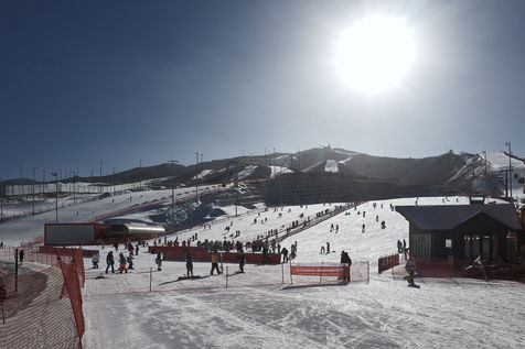 Pourtant, avec des temperatures extremes l impression d hiver est bien la et meme si le paysage est assez deroutant avec ces montagnes arides qui entourent la station, on pourrait s y tromper et penser que la neige est naturelle ! Mais celle-ci vient d une armee de canons a neige disposes tout le long des pistes et il faut bien dire que sa qualite est exceptionnelle, moelleuse comme du sucre glace et sans aucune plaque de verglas.