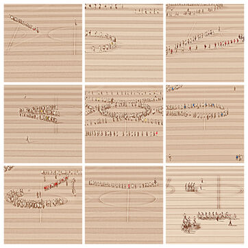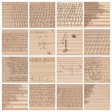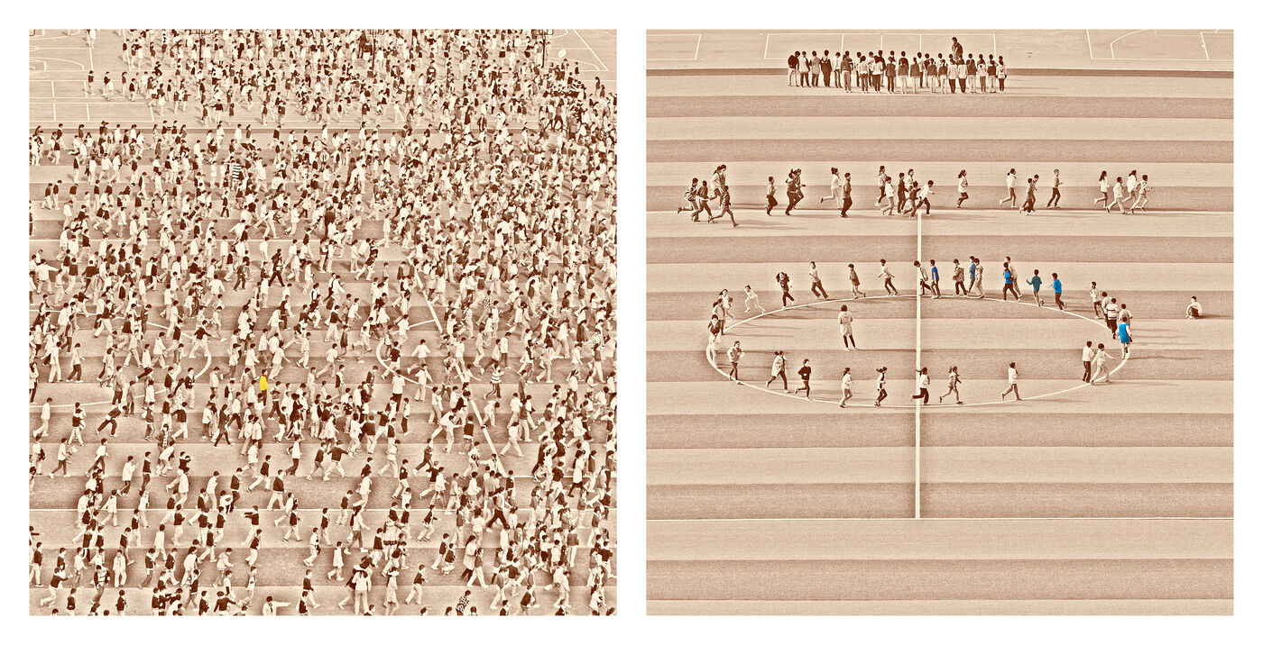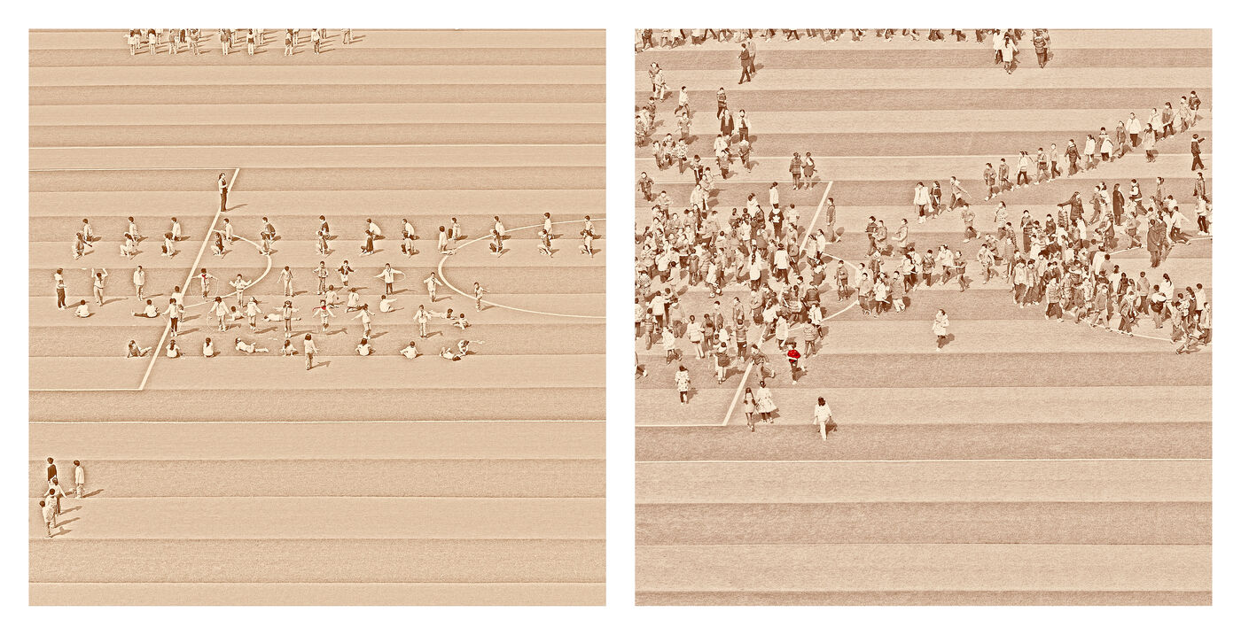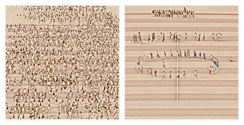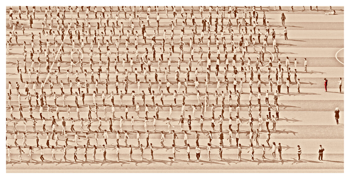 Beyond the effect of mass and uniformity which we can feel by looking at these scenes in their global nature, we realize by looking closer and in detail whom these children, taken individually, are as all the children of the world: lively, turbulents, sometimes obedients, sometimes undisciplined, attentives or not, serious, exuberants, cheerful persons, players.