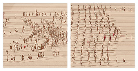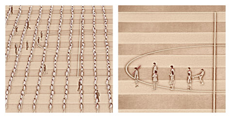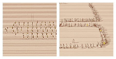 Le reste du temps, ils sont réunis en petits comités afin d?apprendre et de répéter les parties de la chorégraphie qui leur sont assignées ou bien pour faire du sport.