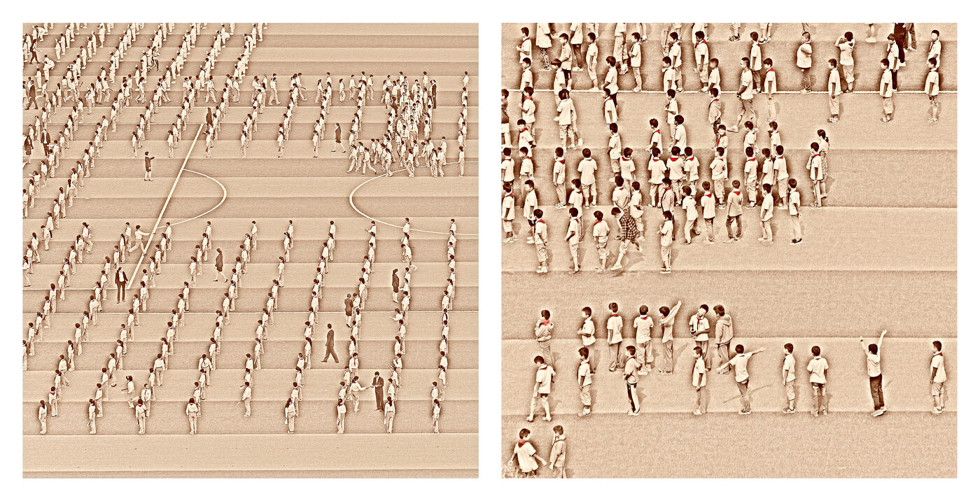 Au delà de l?effet de masse et d?uniformité que l?on peut ressentir en regardant ces scènes dans leur globalité, on se rend compte en regardant de plus près et dans les détails que ces enfants, pris individuellement, sont comme tous les enfants du monde : vifs, turbulents, parfois obéissants, parfois indisciplinés, attentifs ou non, sérieux, exubérants, rieurs, joueurs.