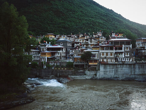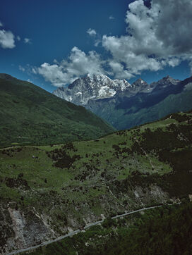 Very soon after Chengdu we find ourselves on the foothills of the Himalayas and the Alpine landscapes await us. Deep valleys and high snow-covered peaks, fast flowing rivers, lakes, conifers, marmots, cows, ... If it were not for the architecture of the houses, the Tibetan prayer flags scattered in many places and the Buddhist monasteries in great number, we could have thought we were in the Alps! With a difference however... The altitude, always it. In the heart of the Siguniang natural park that we crossed is a mountain range of the same name and which means "the 4 sisters". The highest of them, called "the youngest sister" culminates at 6240 meters of altitude! Classified as a Unesco World Heritage Site because the region is also home to the Giant Panda Nature Reserve, this mountain has rarely been climbed because of its difficulty.