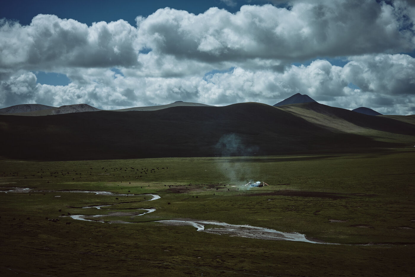 ... The Tibet plateau! No, this is not how it happened and it is really difficult to know when we really reached it. It is true that the valleys have widened, the trees have become rare until they disappear completely, the yaks have replaced the cows and the tents of the nomads have become more and more numerous. In fact, there was no "sudden" because when you think you have reached the top, there is even more height just behind. But at one point, the altimeter did not go below 4000 meters. And that's when we said to ourselves that we had to be on the plateau.