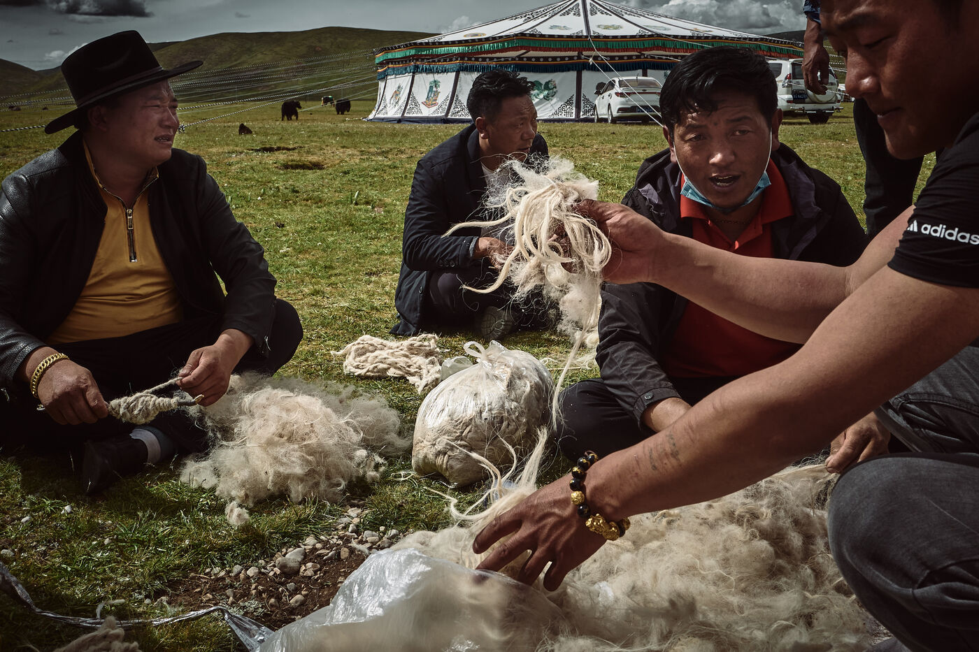 La grande majorité de ceux que nous avons rencontrés sont des pasteurs et ils vivent essentiellement de l?élevage de Yack et de chevaux. La viande du yack, la plupart du temps séchée, est très appréciée dans toute la Chine, mais le yogourt, le beurre et la crème le sont tout autant. Ils constituent d?ailleurs le repas de base qui comporte peu de légumes.