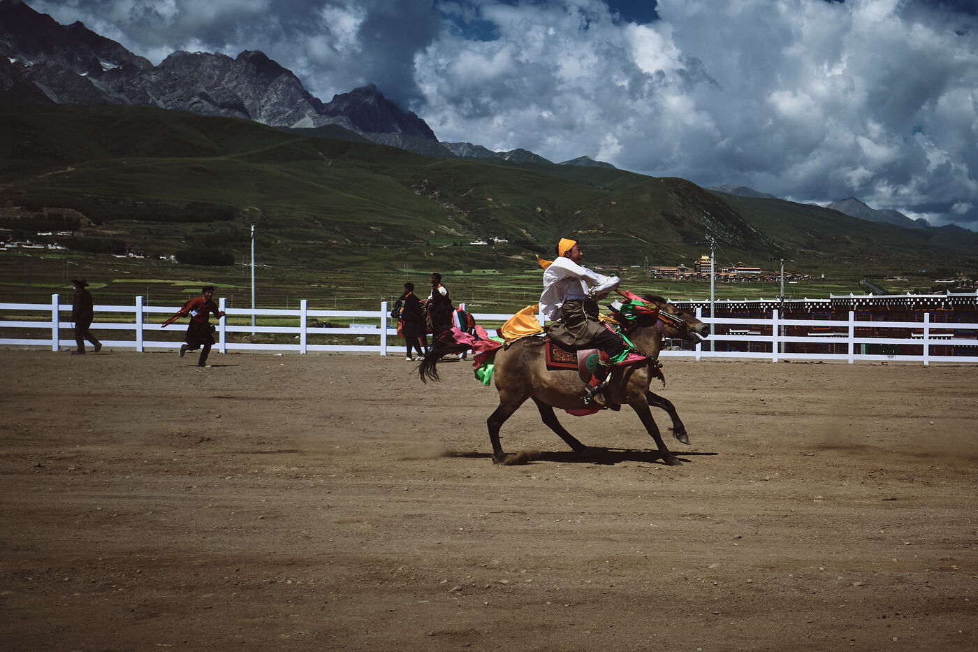 Les Tibétains sont profondément attachés à leurs chevaux qui sont également leur fierté et ils les bichonnent à longueur de temps. En fait, il s?agit plutôt de poneys car leur taille est modeste. Très endurants, forts et sobres, les Tibétains effectuent avec eux de multiples tâches, mais il en est une dont la réputation de leur propriétaire dépend : les courses. Ainsi, ces grands rassemblements estivaux sont aussi l?occasion pour les familles de confronter leurs plus belles montures, de montrer l?habileté de leurs cavaliers à travers des courses, des jeux équestres, de la voltige.