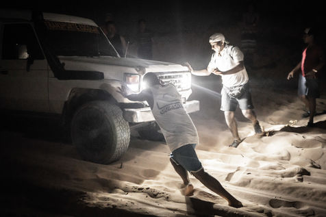L'habitacle de la voiture se transforme alors en abri de fortune. On y somnole généralement très mal, le temps qu'une pièce de moteur manquante ou qu'un pneu soit apportés par un taxi... ou d'autres marginaux, qu'on croise parfois aussi dans les déserts.