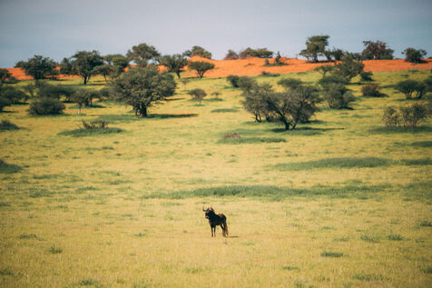 Dans le désert du Kalahari, les vastes plaines arides et les dunes dorées offrent un spectacle à couper le souffle. Les acacias tordus et les baobabs majestueux ponctuent le paysage, créant des compositions visuelles uniques où la vie lutte pour s'épanouir dans un environnement hostile.