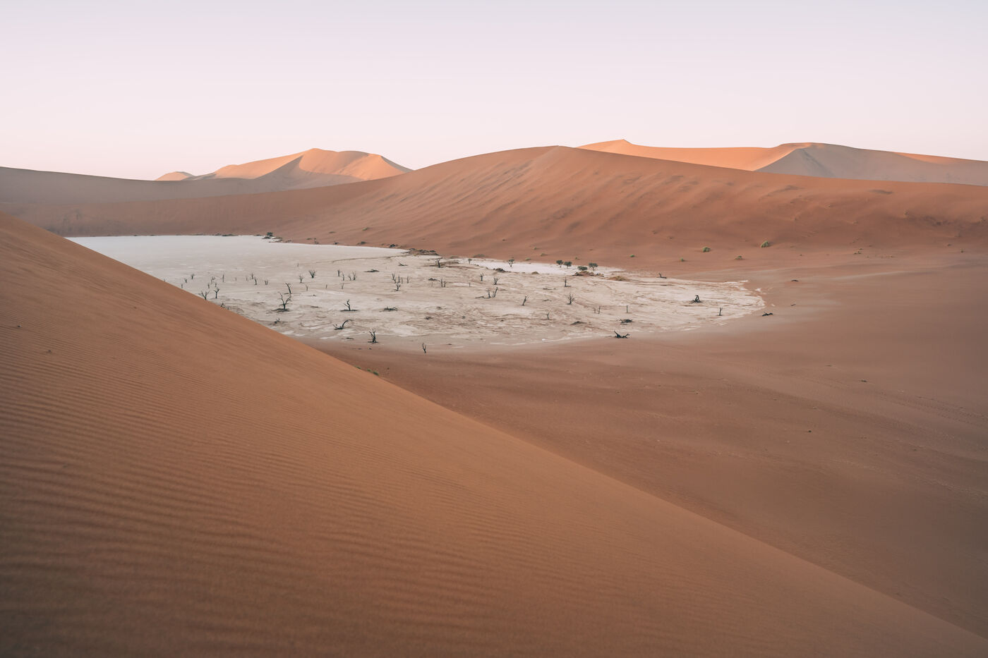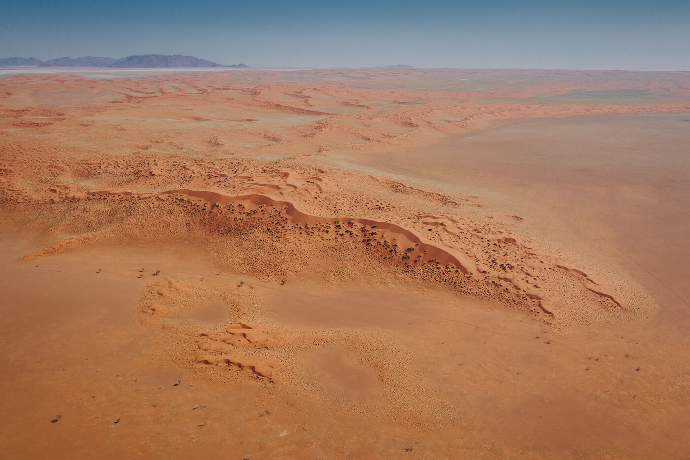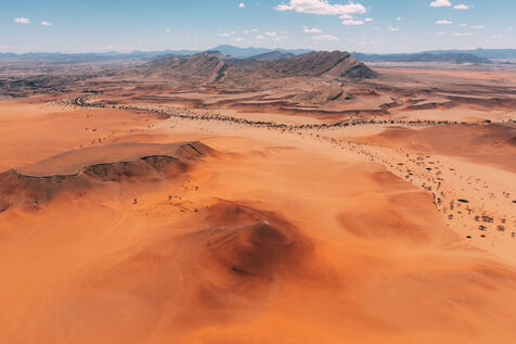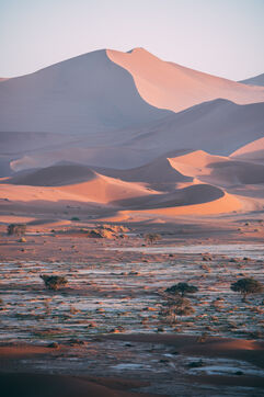 In the heart of the Namib Desert, the reddish sand dunes stretch as far as the eye can see, creating an unreal and moving landscape. Each shot captures the silent immensity of this million-year-old desert, where the dunes seem frozen in time, silent witnesses to the passage of centuries.