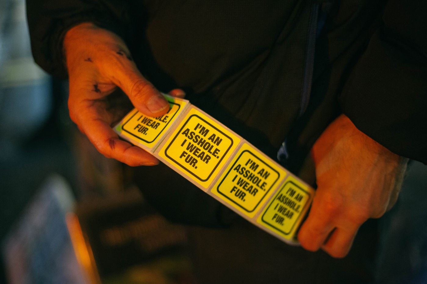 "Levez les mains si vous portez de la fourrure!"