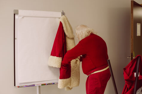 "Louis, enchanté". "Vous allez me prendre en photo aujourd'hui, c'est ça?" demande t-il avec un grand sourire. À la vue de mon appareil photo, Victor décide de me laisser entrer dans son vestiaire. "Je vais vous faire un beau cadeau, vous allez voir le Père Noël se changer aujourd'hui !".