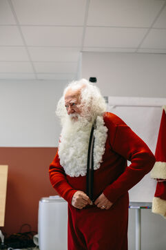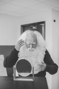 "Louis, nice to meet you" "You're going to take my picture today, right?" he asks with a big smile. At the sight of my camera, Victor decides to let me into his dressing room. "I'm going to give you a nice gift, you're going to see Santa change today." Like a kid, I start chatting with Victor while he gets dressed. "World Champion Santa Claus in Lapland in 2011! I'm not a Supermarket Santa, I'll tell you that." Like a little mouse, I document the scene. Victor combs his beard, shapes his smile in the mirror. He ends up taking his long red coat out of its bag, a magnificent jacket that he had custom-made and paid for in francs at the time. Dressed from head to toe, Victor repeats his text with me. "OH OH OH!", "How are you, my little one? ". He heads towards the main room of the restaurant. "Not an easy job".