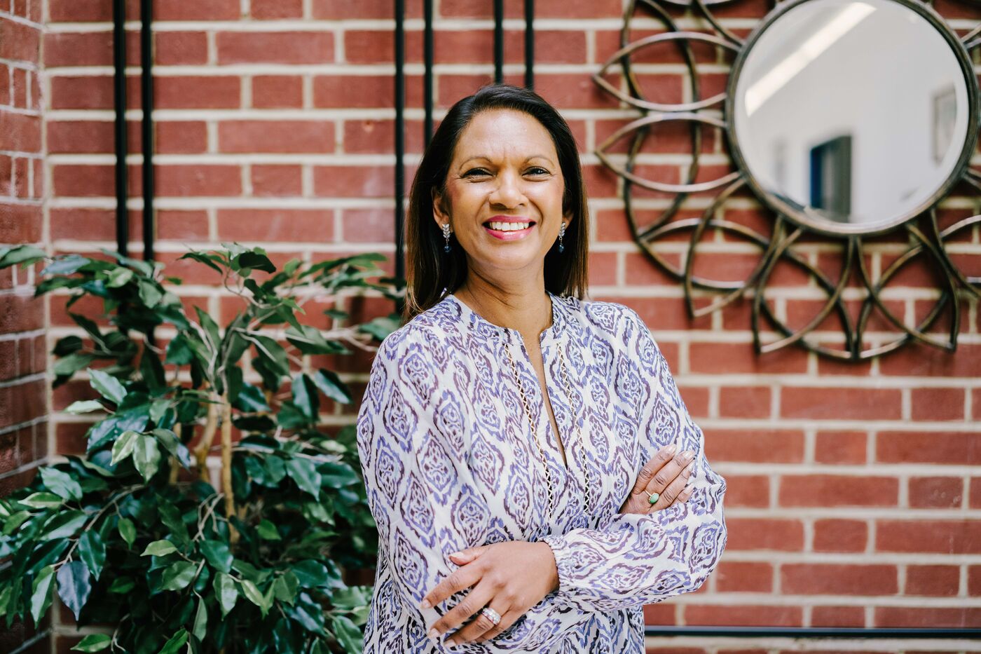 Portrait of Gina Miller, founder of the True and Fair party at Michellin House, Chelsea, London for the Financial Times.