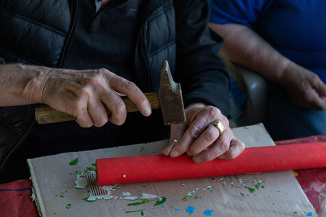J'y ai déambulé, passé de riches moments à discuter avec les habitants de l'hôpital et essayé de ressentir le plus profondément possible, l'énergie qui se dégageait de ces lieux. J'ai partage? ces instants de la vie quotidienne imprégnés de l'atmosphère médicale, ai assisté à différents types d'ateliers, y ai proposé des temps de rencontre, d'échange et de co- création. En dehors des ateliers de transmission et de création formelle, je naviguais à la "Cafet", un espace de sociothérapie où les patients de toutes les unités de l'hôpital peuvent se croiser, partager un temps s'ils le souhaitent, ou bien entreprendre une plongée solitaire dans leurs univers singuliers. Mon objectif final a été de retranscrire, à travers images et mots, les maintes sensations et émotions qui m'ont parcouru pendant ces semaines d'immersion.