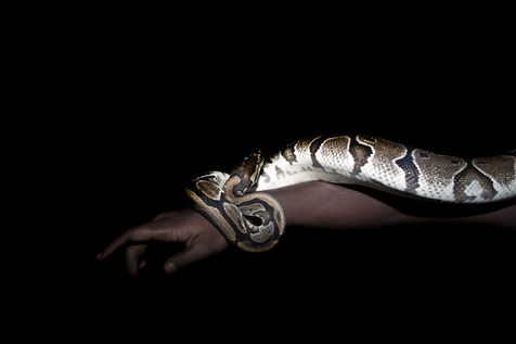 Pays où les esprits sont imbriqués au vivant, où la vie tutoie de si près la mort, où à chaque chose l'on attribue une signification seconde. La réalité qui se dessine ici contient en elle-même un au-delà, un ailleurs. L'imaginaire s'imbrique au réel pour dessiner un territoire où le visible n'existe pas sans l'invisible. La tradition orale béninoise décrit des mythes fondateurs où l'animal est symbole de sacralité, l'incarnation d'une divinité.