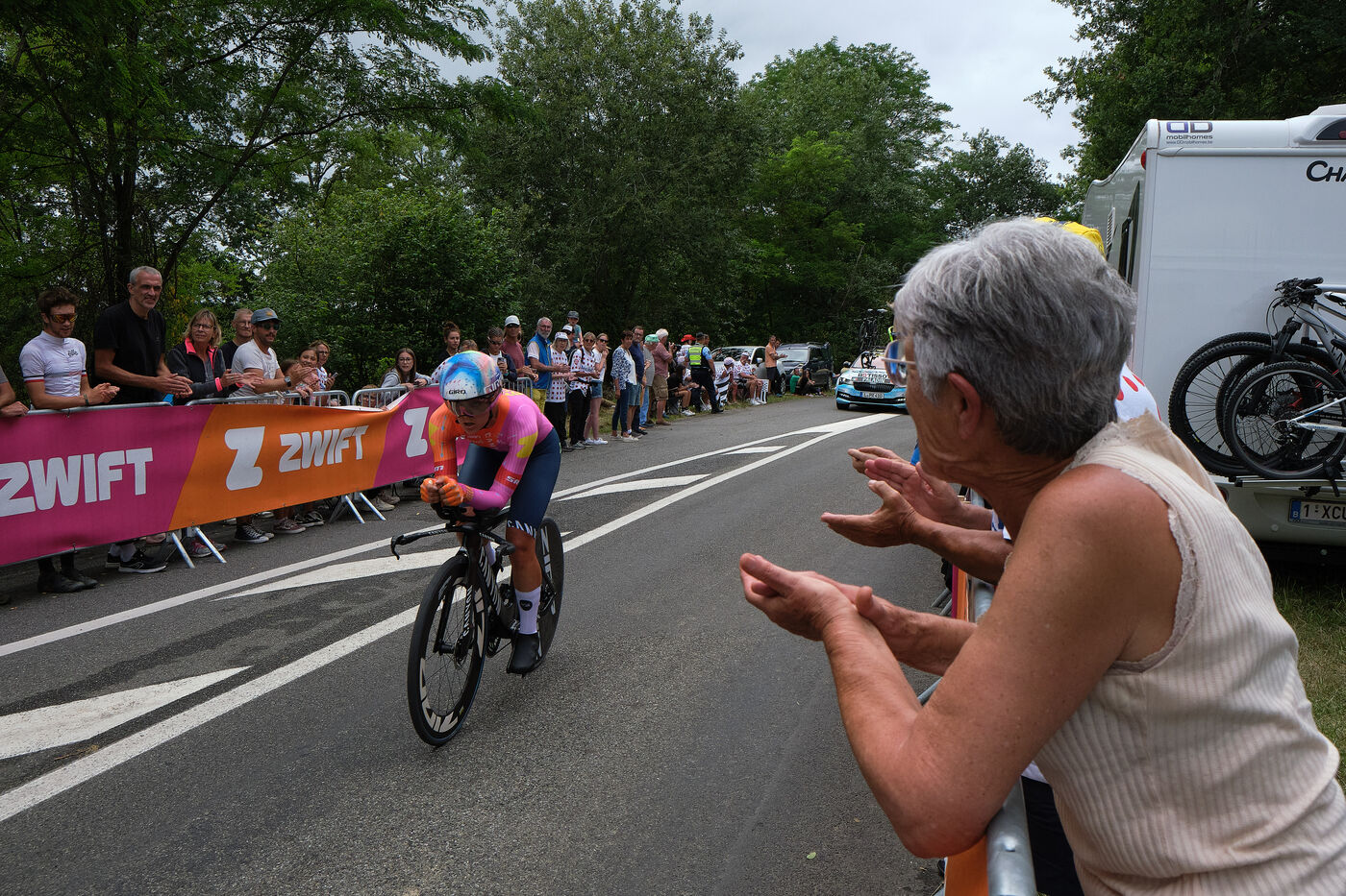 8th and final stage of the 2023 Tour de France Femmes: Dutch rider Demi Vollering, wearing the yellow jersey after her victory at the Tourmalet, finished 2nd in the time trial in Pau and won her first Tour de France Femmes at the age of 26. Swiss cyclist Marlen Reusser completed the time trial in 29'55" and claimed victory for this stage.