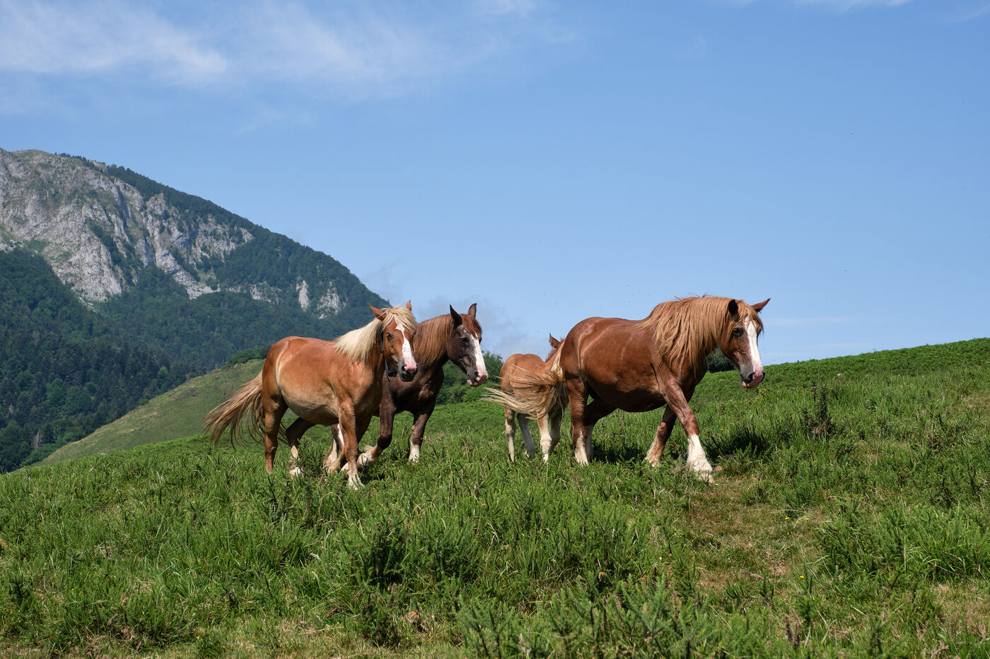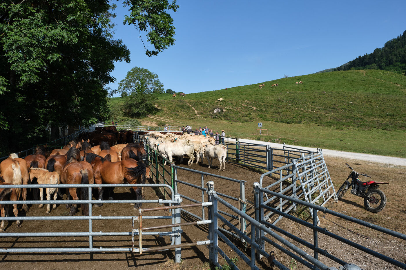Bénou Plateau, July 4, 2025 - The traditional marking of the herds took place this Friday morning, signaling the start of the summer transhumance in the Ossau Valley. Farmers gathered several hundred cows and horses to mark them with tar using an H (for Haut-Ossau) and a B (for Bilhères and Bielle), ensuring their identification throughout the grazing season in the mountains.