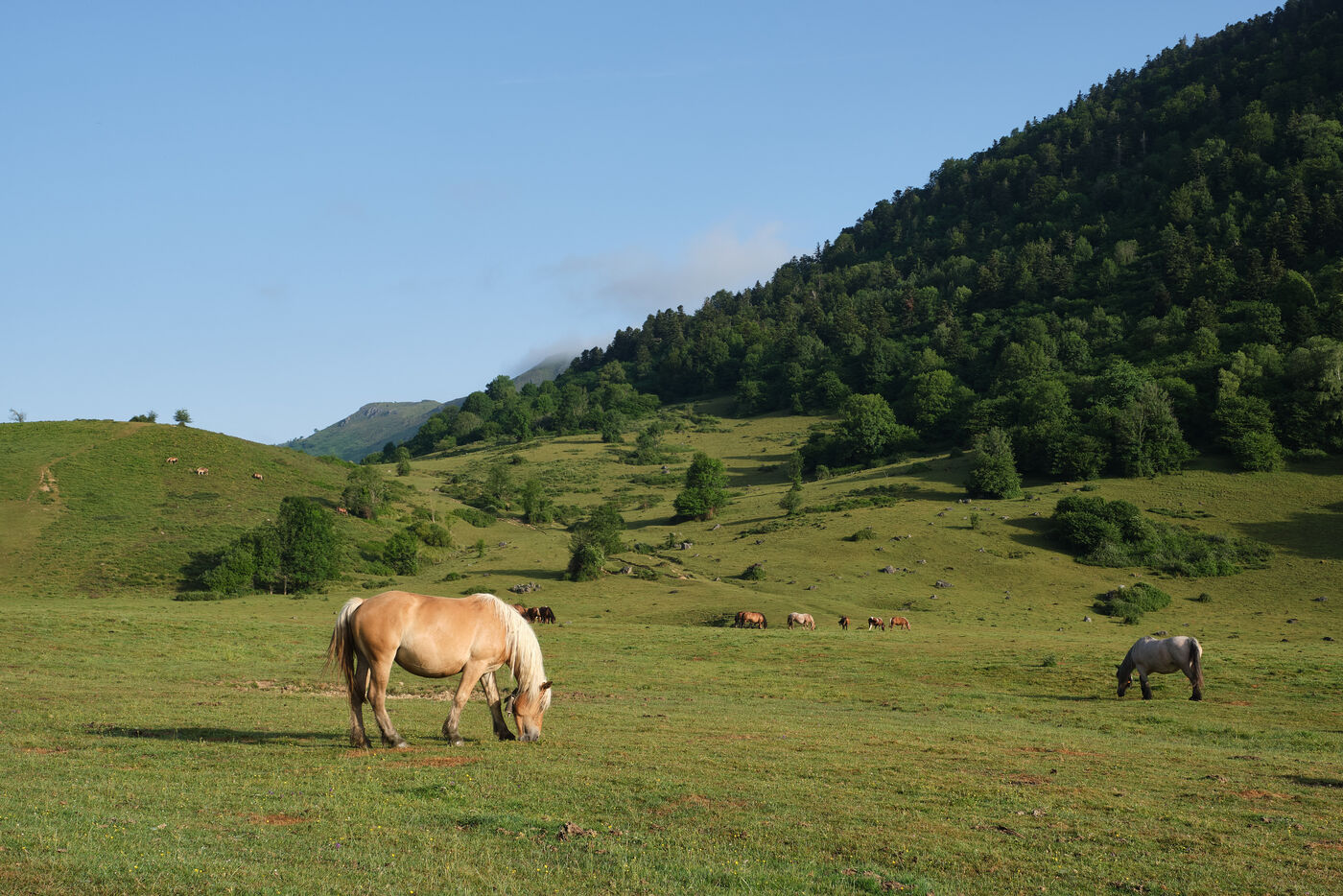 Plateau du Bénou, 4 juillet 2025 — Le traditionnel marquage des troupeaux s’est déroulé ce vendredi matin, marquant le coup d’envoi de la transhumance estivale en vallée d’Ossau. Les éleveurs ont rassemblé plusieurs centaines de vaches et de chevaux, pour les marquer au goudron d’un H (pour Haut-Ossau) et d’un B (pour Bilhères et Bielle), garantissant leur identification tout au long de la saison en estive.