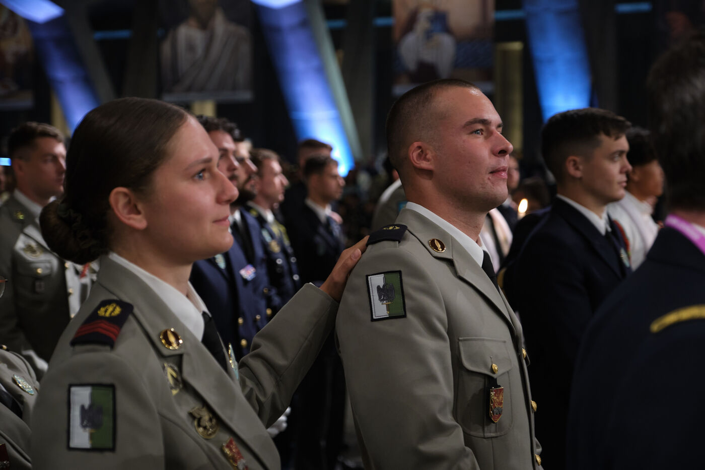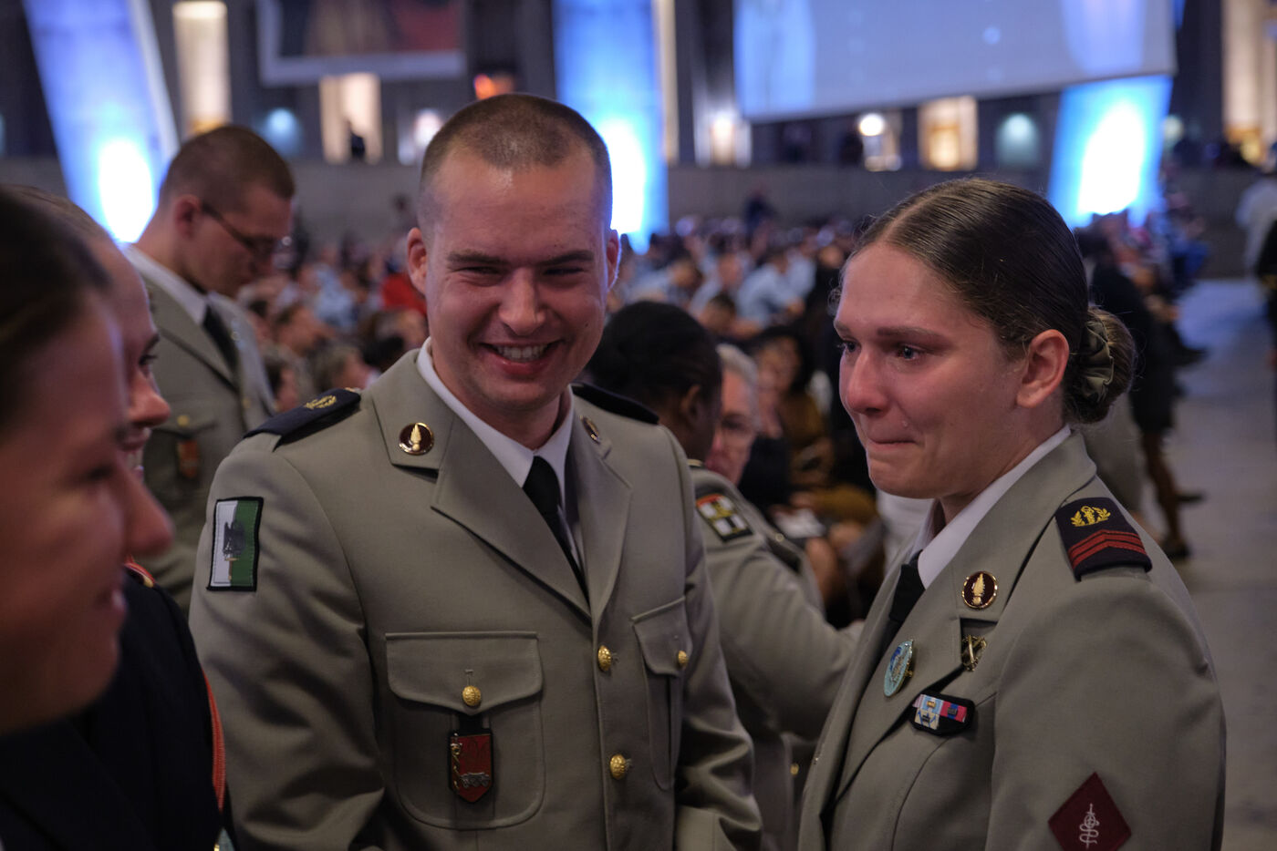 Un an plus tard, Hugo revient au Pèlerinage Militaire International, prêt à recevoir la confirmation. À ses côtés se trouve Manon, sa marraine et caporale dans le même régiment, qui l’accompagne tout au long de cette démarche spirituelle. Lors de cette messe, 205 militaires ont étés baptisés et 500 ont reçu la confirmation.