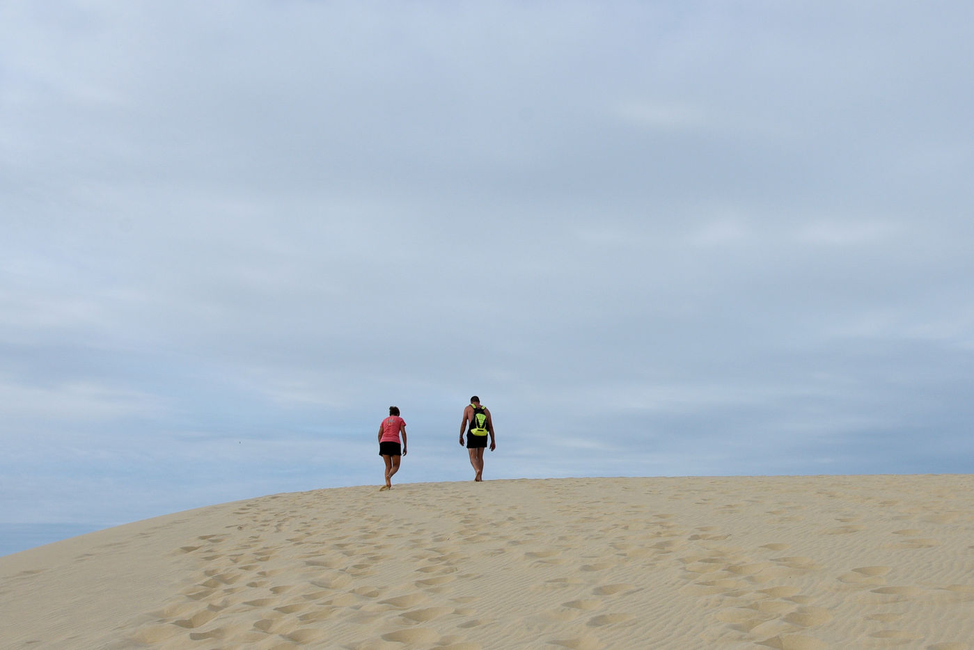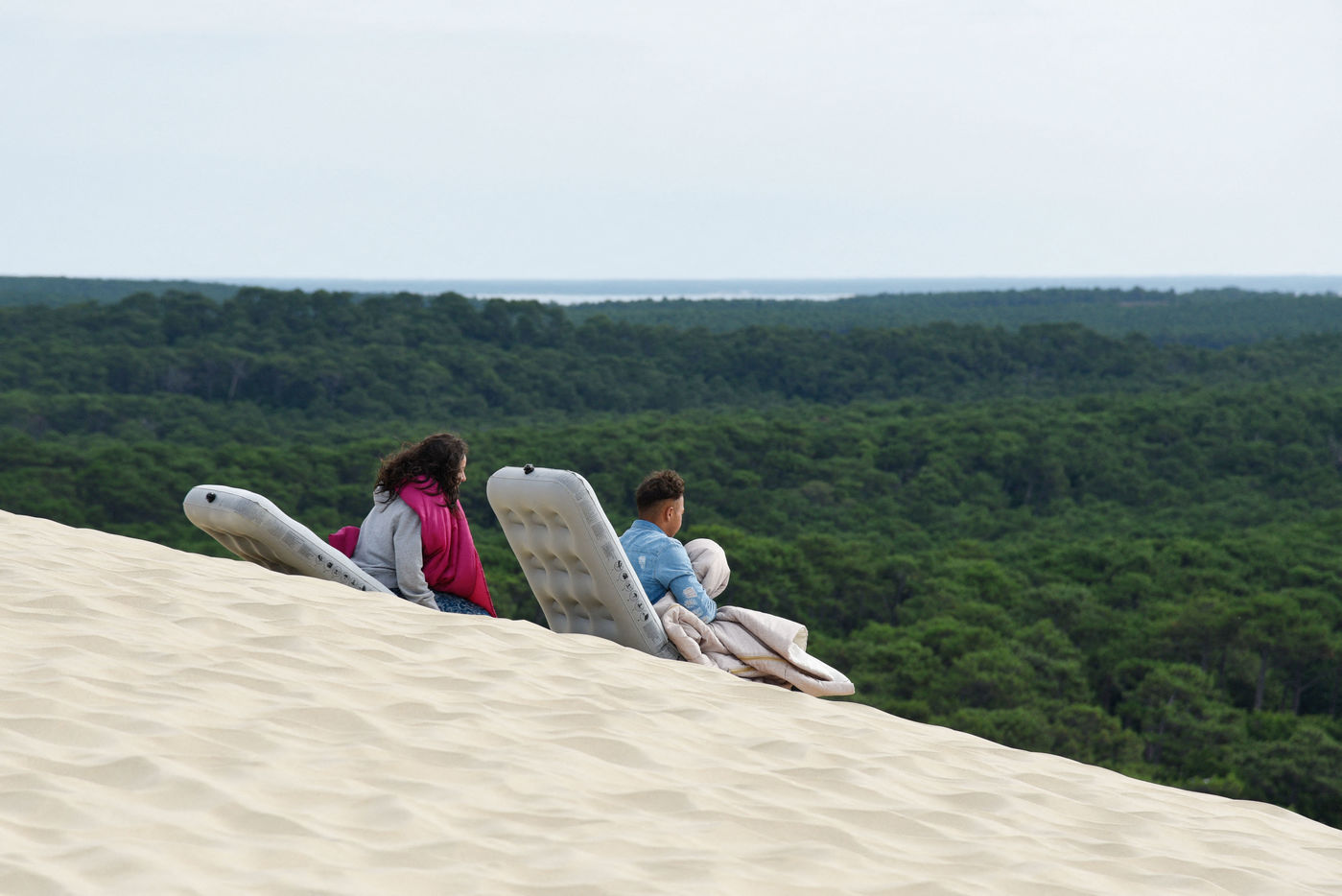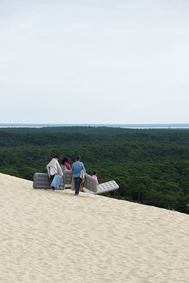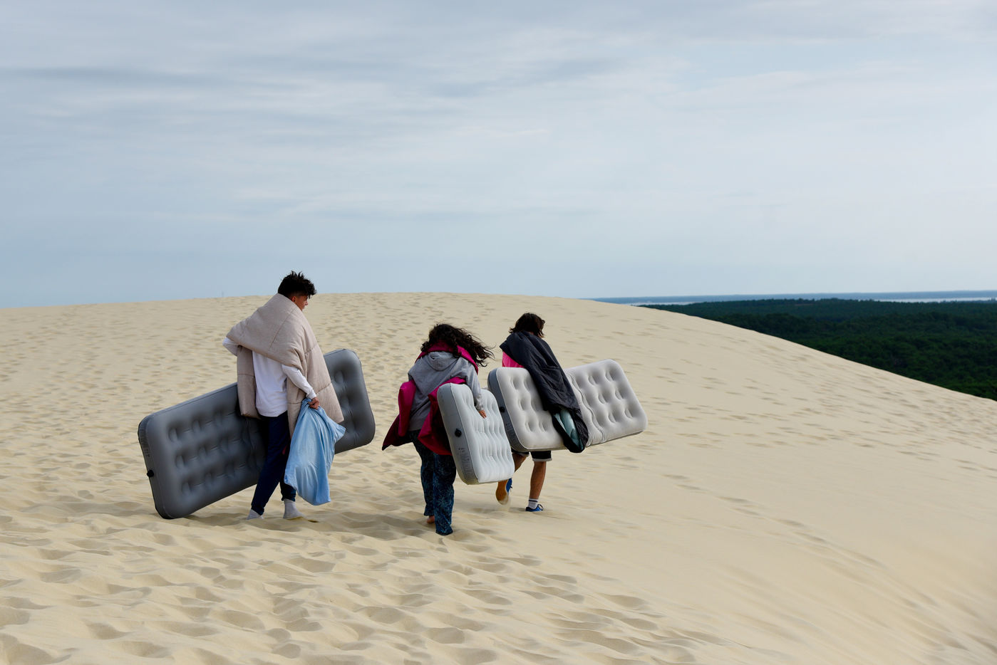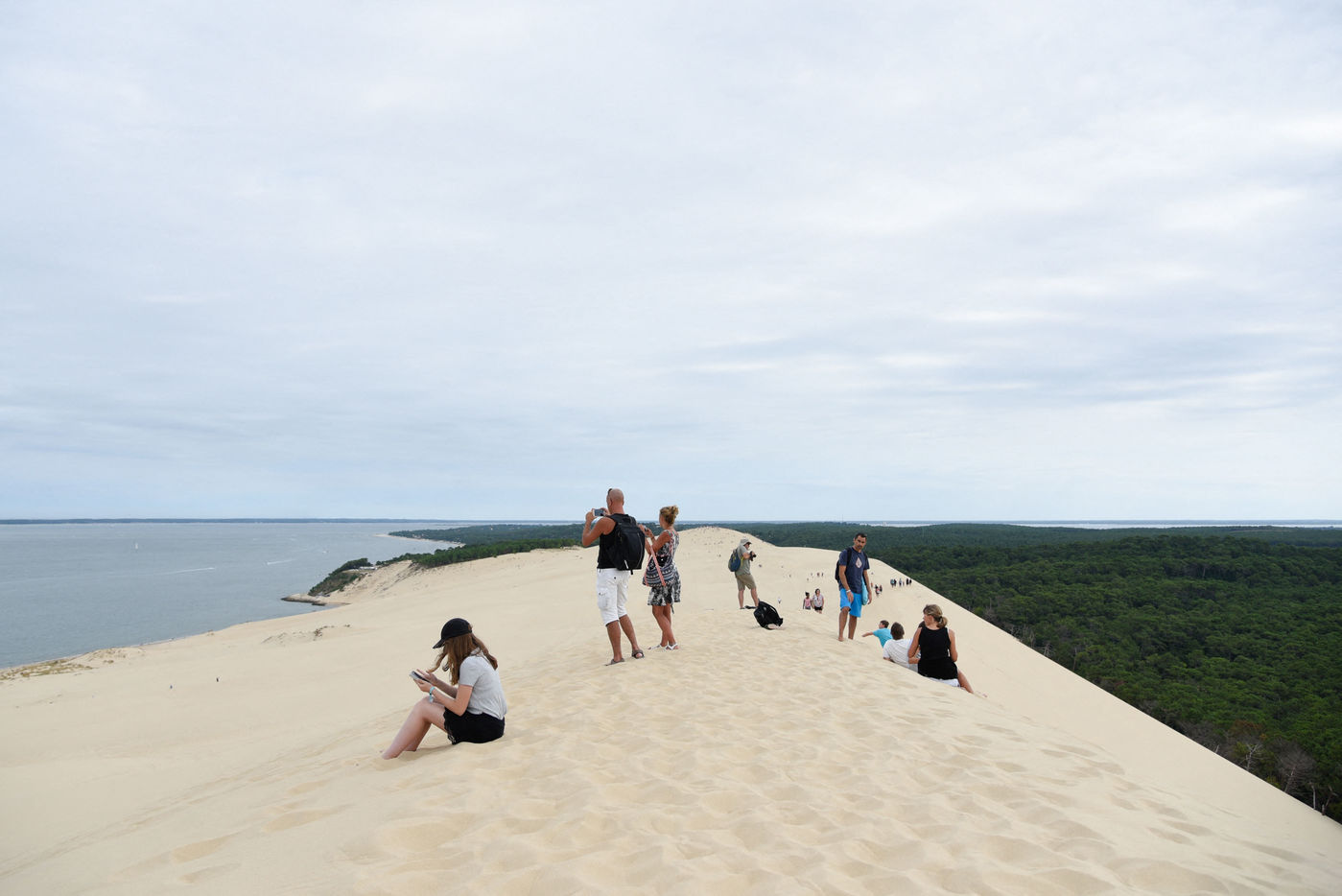 Des premières heures du jour dans la quiétude jusqu'à la fin de matinée avec l'arrivée de centaines de touristes, promeneurs, curieux... Avec près de deux millions de visiteurs par an, le site de la Dune du Pilat sur la commune de la Teste de Buch, reste particulièrement prisé avec ses 106,6 m de haut, 3 km de long, des millions de m3 de sable fin et 4000 ans d?histoire sous l?action des vents et des marées. Un patrimoine naturel unique en Europe.