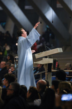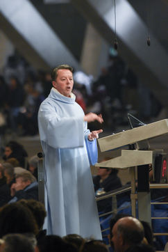Le maitre de choeur et chantre de Lourdes, Frederic Dupuy. Après avoir connu le choeur d'adultes de la maitrise de Notre-Dame de Paris, il a rejoint Lourdes en 2004 pour etre un des deux chantres au sanctuaire de Lourdes avec la maitrise de six langues, du latin... Chantre est un metier meconnu en France surtout reconnu en Ile-de-France alors qu'il est exerce depuis des millenaires. Rares sont ceux qui en vivent en France.