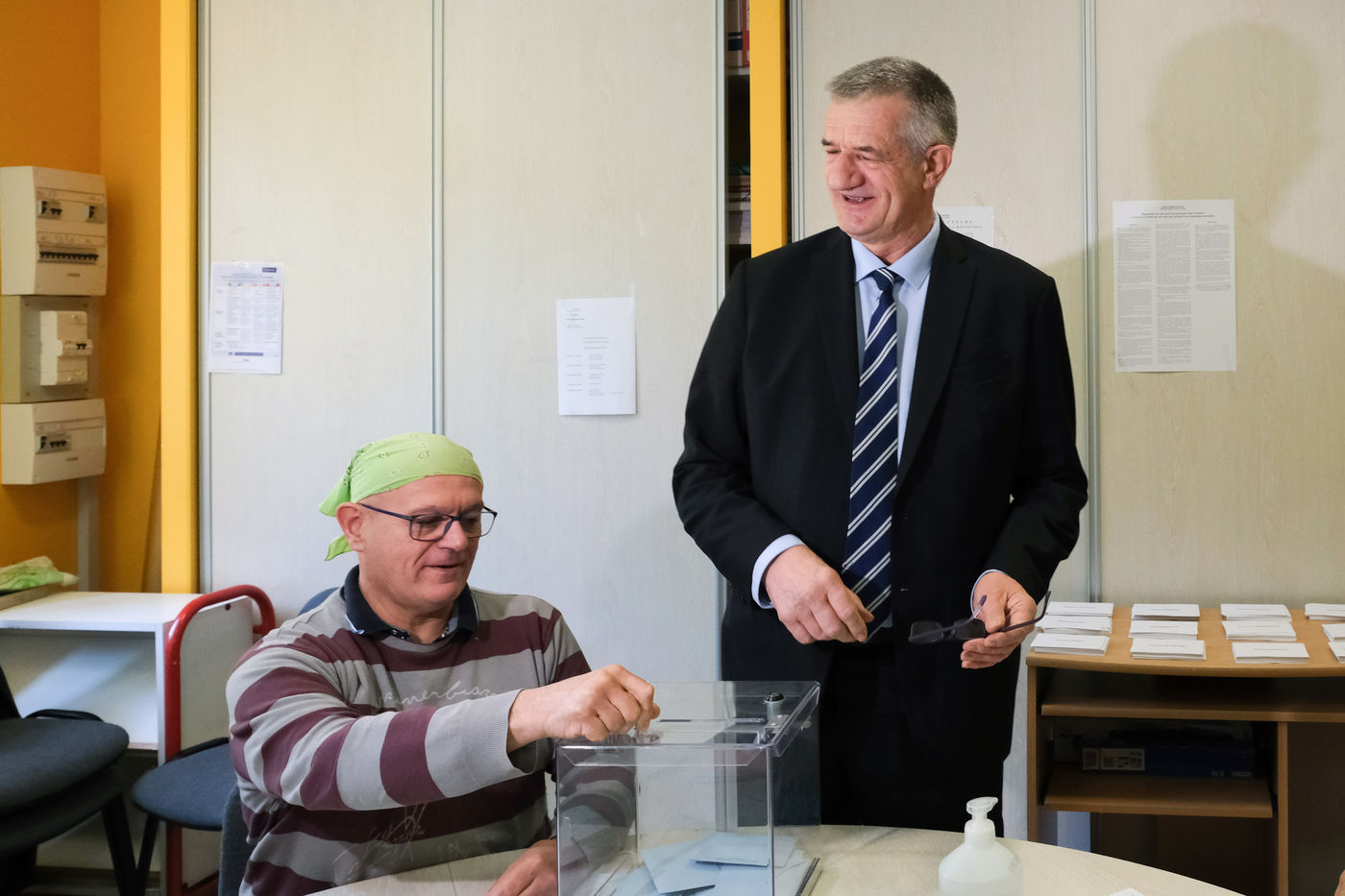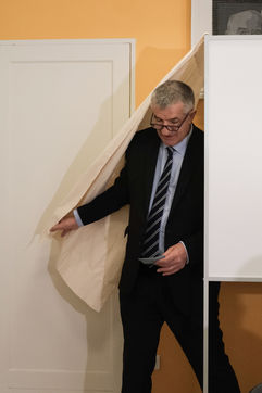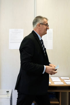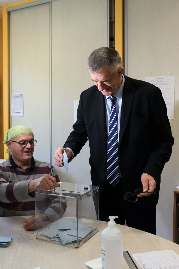 France - Lourdios Icheres - Vote of candidate Jean Lassalle, Resistons movement, in his commune of Lourdios-Icheres (Pyrenees-Atlantiques).