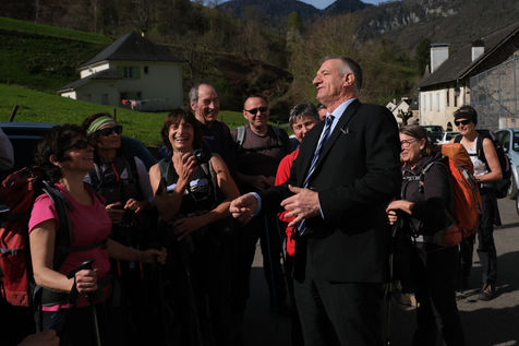France - Lourdios Icheres - Vote du candidat Jean Lassalle, mouvement Resistons, dans sa commune de Lourdios-Icheres (Pyrenees-Atlantiques).