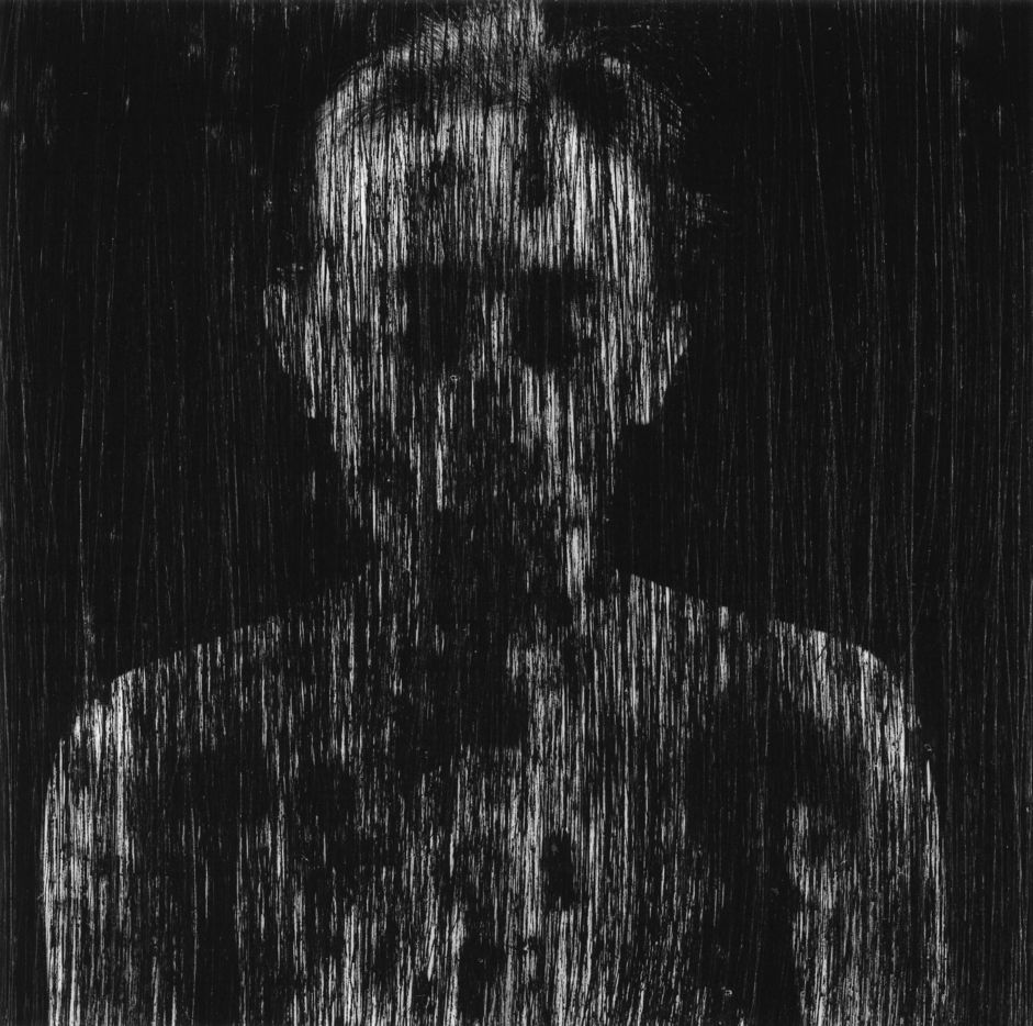 Thus, the piece Death in the soul (2000) rests on a manipulation not optical (Peau de chagrin, Close room...), but physical of a film resulting from a session of old portrait. It is the very surface/material of the photographic support (the negative) that is attacked here, with a rapturous violence, by the hand and the sandpaper. It was necessary at this moment that this hand scratched with a kind of snarl the respectable film. Ah, the spontaneity and the inexplicability of the gesture! The grain of sand. Against the process of the photographic machine which we know is enslaved, designed to efficiently produce smooth, resembling images. Against the softness that threatens us, wins us over. Against and for the photographic image, this so little matter which knows so well how to lure us. For a focus set now as close as possible, on the inscribed scar. Right on the skin, right on the photograph, stigmatized, designated.