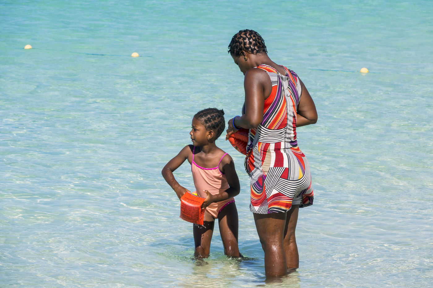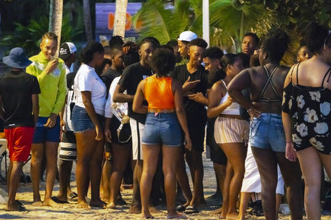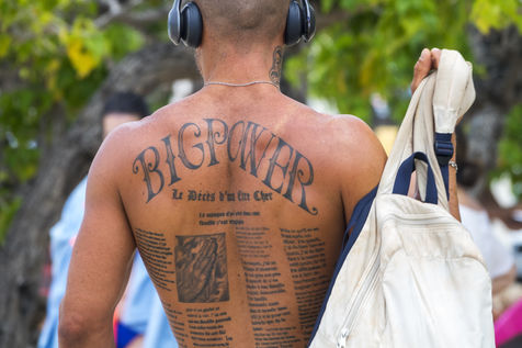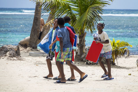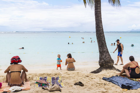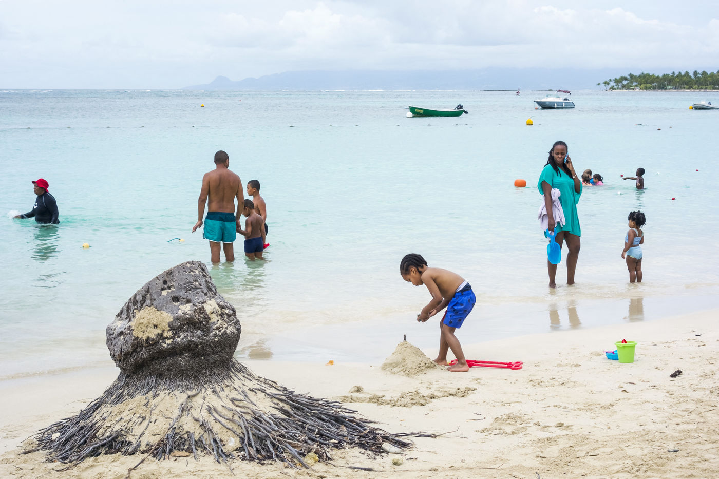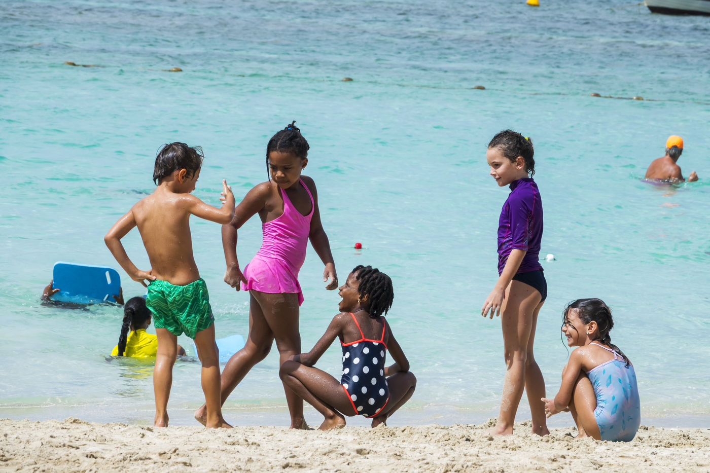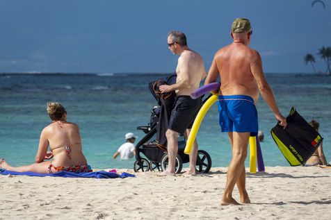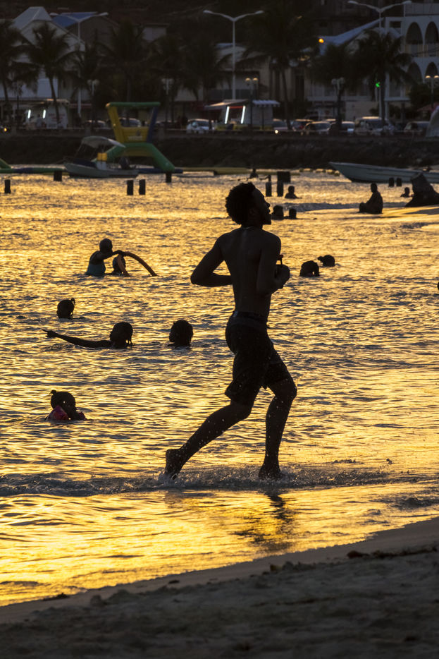 Peu à peu, l'occupation « dynamique » de la plage cède la place aux estivants qui viennent s'aplatir sur leur serviette pour le bain de soleil attendu. Une population familiale, plutôt âgée, des habitués aussi. Crème solaire, lectures, baignade... Seuls quelques nageurs expérimentés crawlent méthodiquement au large. Aux Antilles, la mer est un espace social, on y fait trempette longtemps et toujours en groupe.