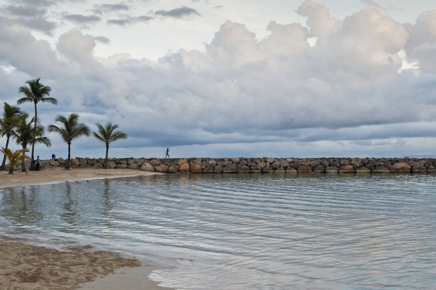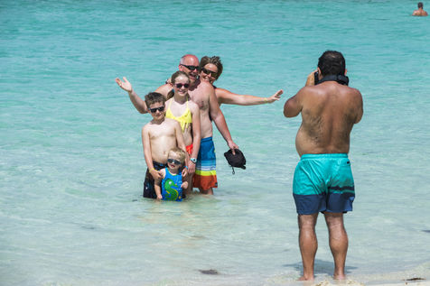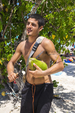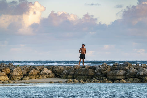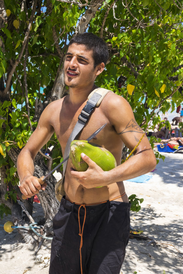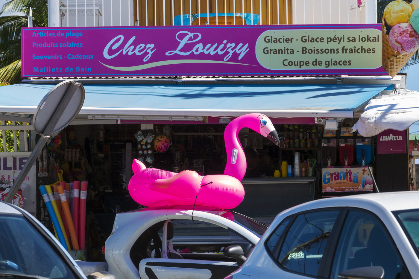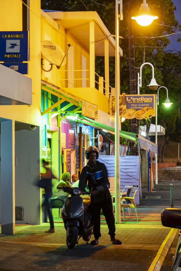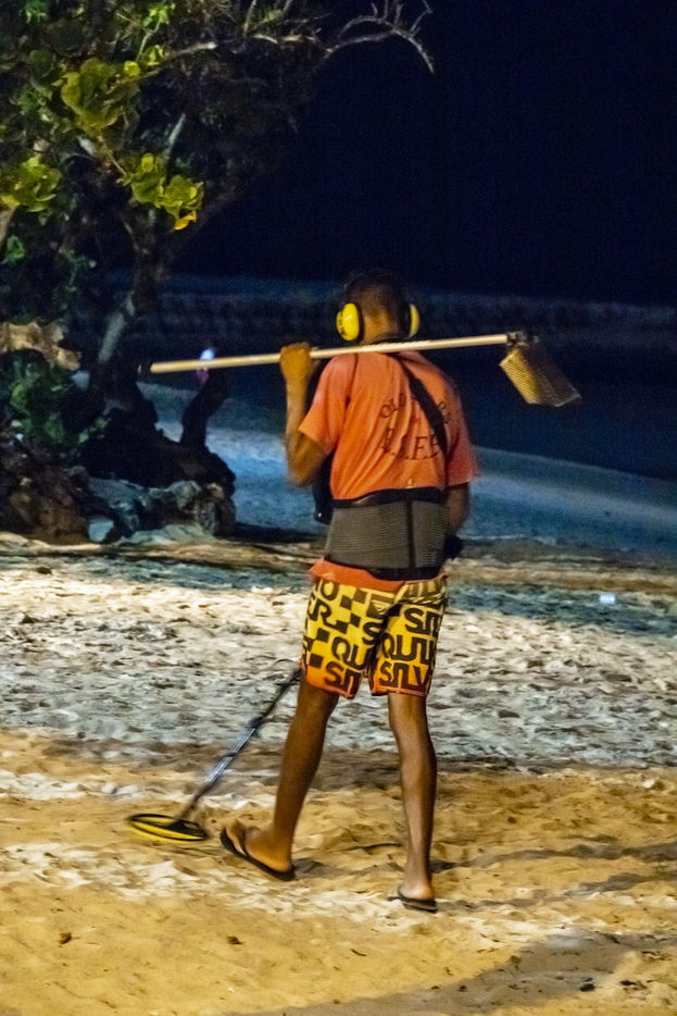 Little by little, the "dynamic" occupation of the beach gives way to the summer people who come to flatten themselves on their towels for the expected sunbathing. A family population, rather old, regulars too. Sunscreen, reading, bathing... Only a few experienced swimmers methodically crawl offshore. In the West Indies, the sea is a social space, we soak for a long time and always in groups.