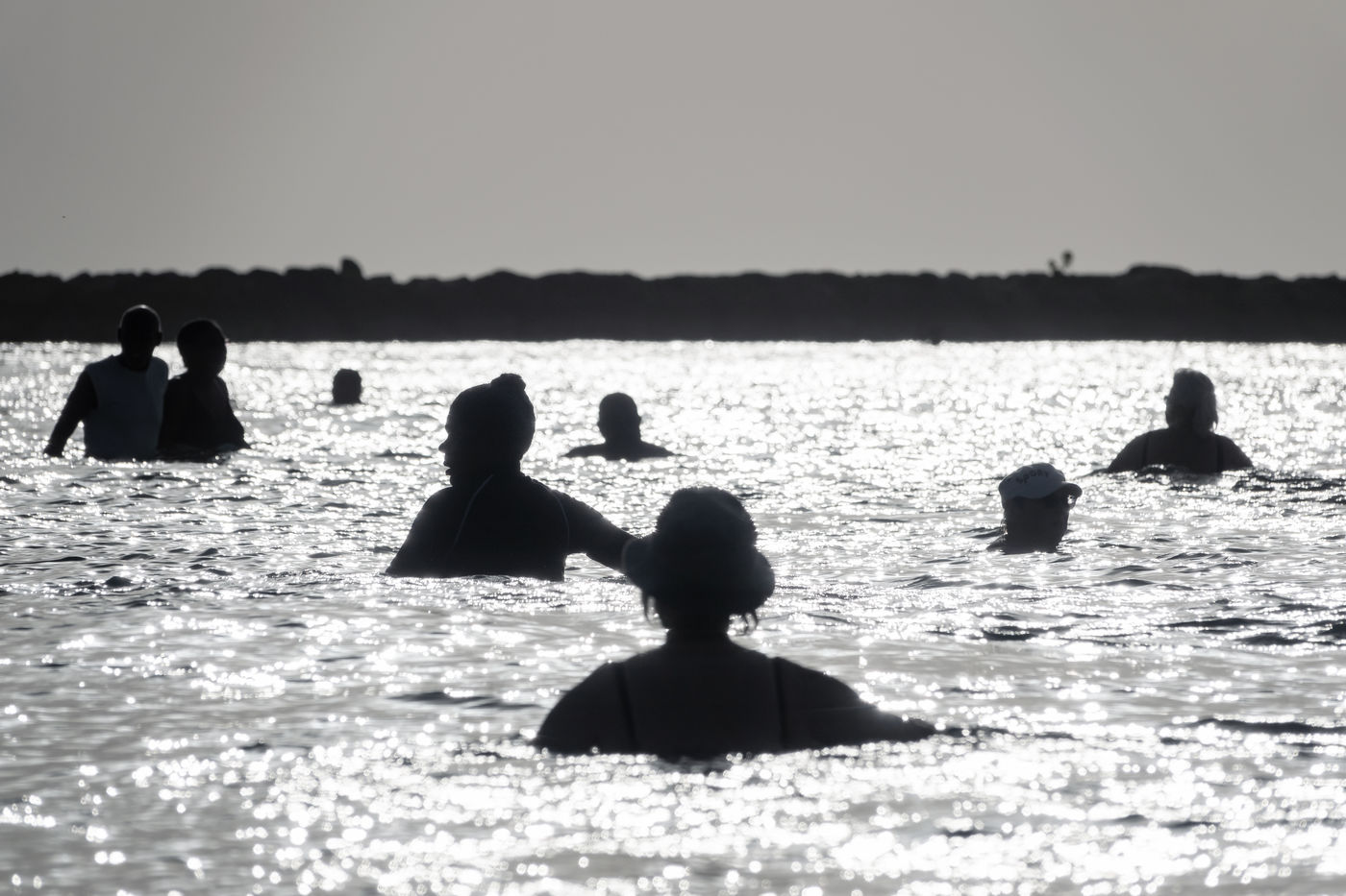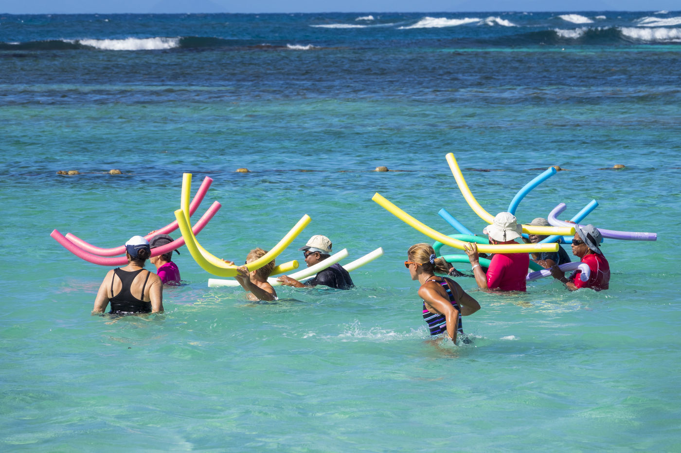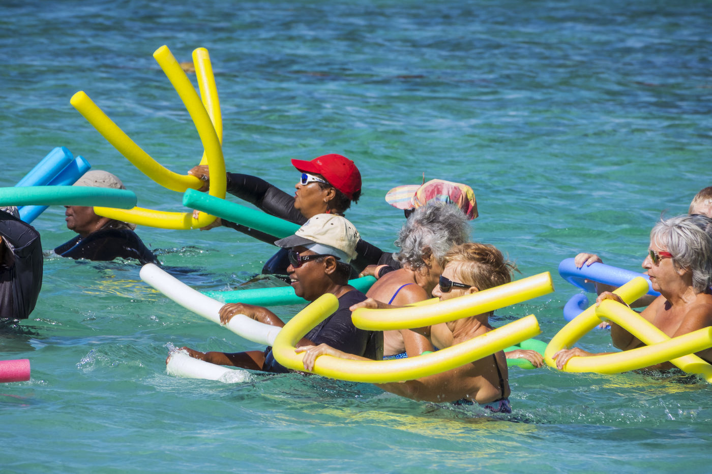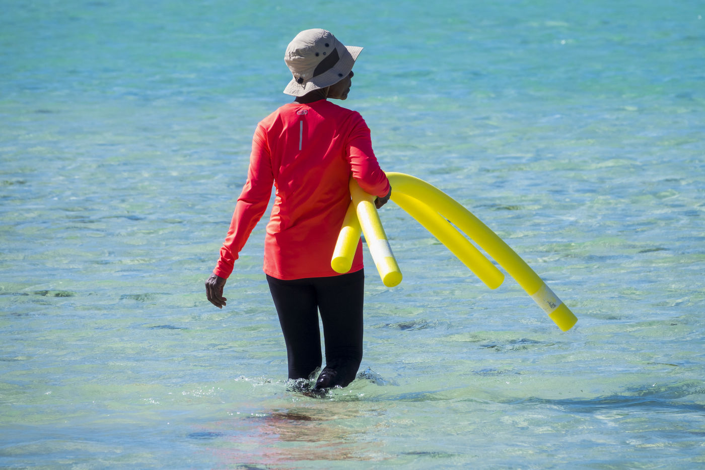 Il convient d'y aller de bonne heure avant le rush pour aller faire des allers retours dans l'eau, un sport qu'on appelle le longe-côte. Cela mérite quelques explications : avec de l'eau aux genoux, on avance rapidement, en petites foulées rapides, ce qui fait travailler le coeur et les cuisses. Avec de l'eau à la taille, les mouvements sont plus lents, mais de plus grande amplitude. Dans l'eau, la résistance est cinq fois plus importante que sur terre, les muscles travaillent donc plus intensément, mais toujours en douceur. Que du bon pour la santé et le moral.
