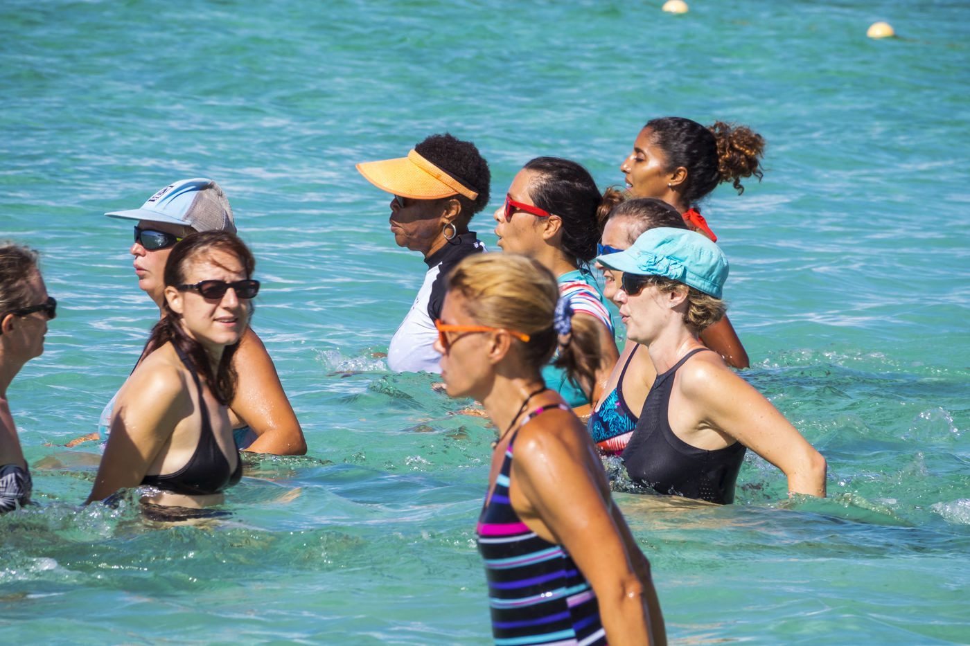 Les pratiquants de ce manège aquatique sont des habitués, on se salue, on bavarde, d'autres, équipés de frites multicolores, suivent des cours d'aquagym ou barbotent en rond tout en devisant. En période scolaire, les petites classes s'y pressent à tour de rôle et à grands cris.