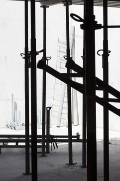 Les images sont silencieuses, tiennent cette vie hors cadre, elles instaurent un moment de repos dans le tintamarre du monde. Eternisent le temps dans une visibilité des corps au travail dont les gestes maîtrisés s'enchaînent tout en se réinventant parce que rien ne se répète jamais à l'identique, ces gestes dont certains semblent aujourd'hui sortir tout droit des temps les plus anciens. Ces acrobates savent si bien « penser avec les mains » ! C'est cet aspect de mon suivi photographique que j'ai choisi de privilégier dans cette sélection d'images, ces acteurs de l'ombre qui ont édifié ces parois et puis ce toit dans une armature innervée qui permettra à d'autres de s'abriter. Hommes à qui je souhaite rendre hommage, ils ont depuis longtemps vidé les lieux pour que d'autres viennent y habiter. Une leçon de modestie, quelle leçon !