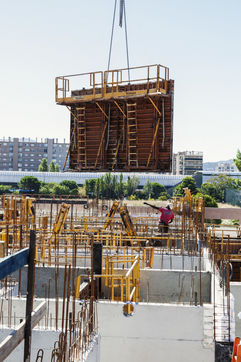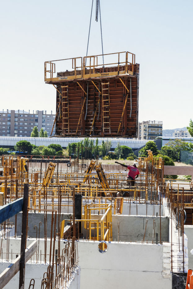 Dans le cadre de l'opération de rénovation urbaine et architecturale du quartier Schloesing à Marseille, non loin du Vélodrome, la Société Nationale Immobilière m'a confié le suivi photographique de la construction de l'ensemble de logements "Les rives de l'Huveaune" d'après les plans de l'atelier d'architecture Bouillaud & Donnadieu.