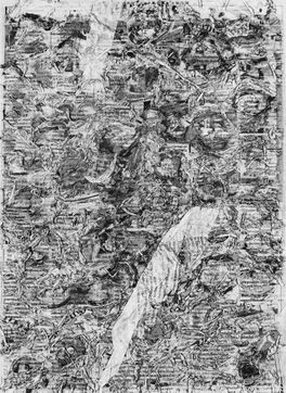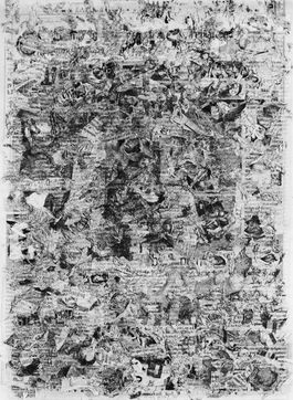 But have we really weighed what happens to what was written in the newspaper, what remains in us (individually, collectively), what is archived there? Lionel Fourneaux, takes this question in hand: soaks the newspaper long enough to almost bring it back to its former state of paper pulp, then re-spreads it with what was written on it and which is now incorporated into it. The writing has become a raw material in the process. You see the result. Why does one start thinking about an etching, an old Dürer, for example? All this random dispersion of what was written, the day before, tied to the material of the support, brings us back to an old and melancholic technique of reproduction? Isn't that what this series indicates: the space of the image, isn't it this reminder of the very old that rises from a magma of memory: finally, isn't that the real intimacy of the everyday?