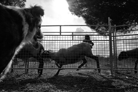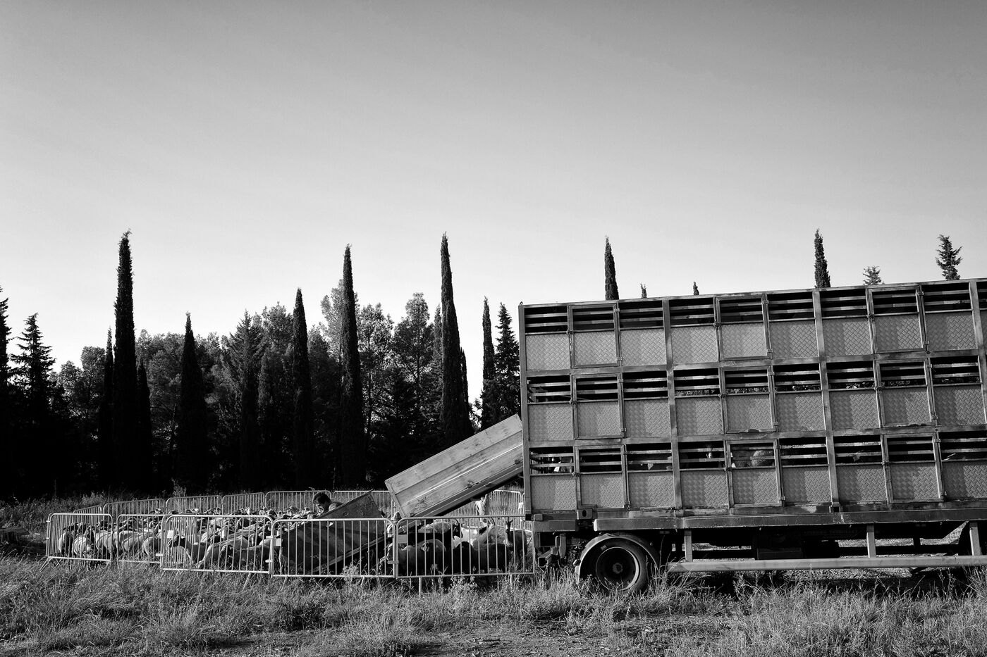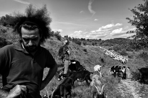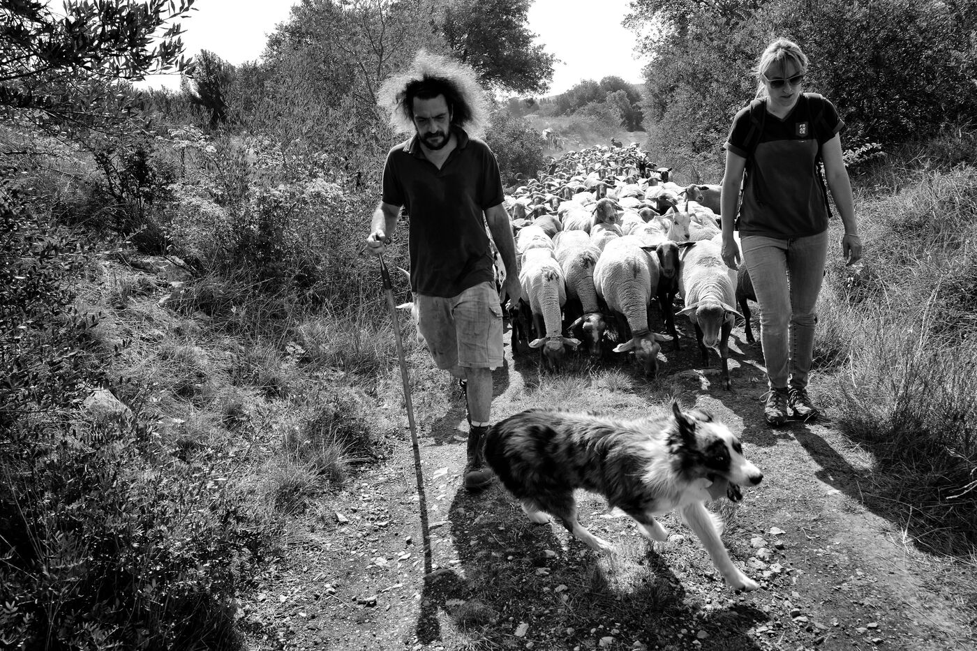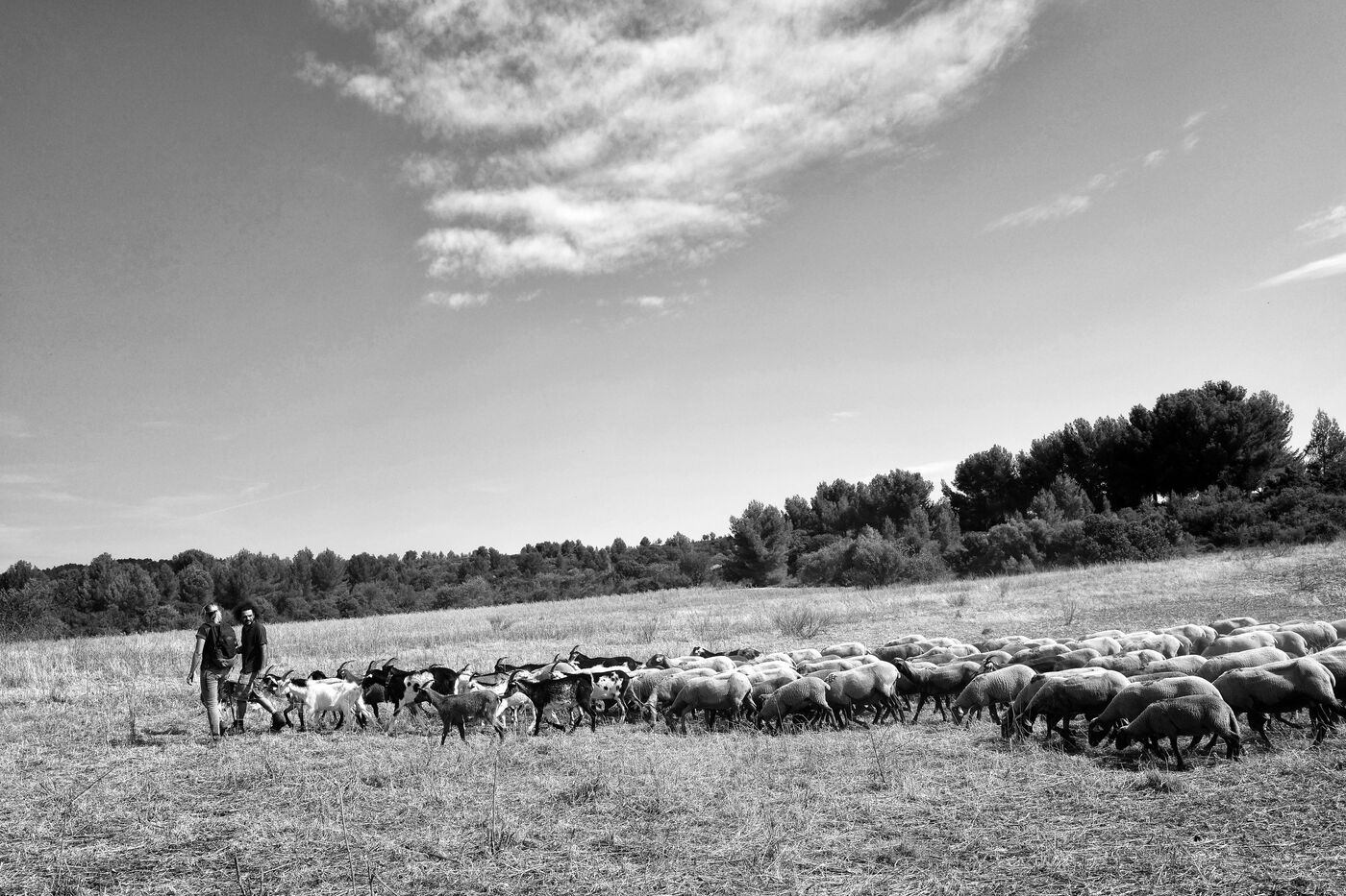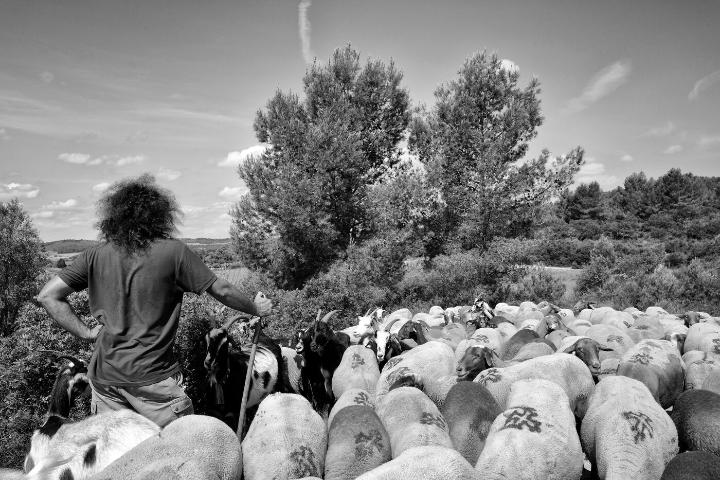 While waiting for the freshness of the Savoyard mountain pastures which are fast approaching, Christophe and Jessica, breeder of goats and sheep, reds from Roussillon, move their herd to the various pastures around Villeveyrac, a small town in the Hérault region.