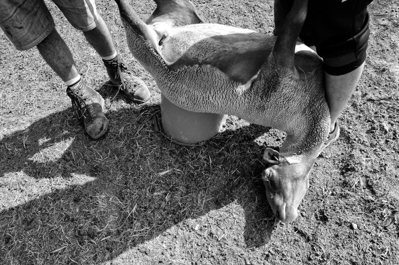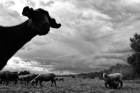 En attendant la fraicheur de l'estive savoyarde qui arrive à grands pas, Christophe et Jessica, éleveur de chèvres et de brebis, des rouges du roussillon, déplacent leur troupeau sur les différents paturages aux alentours de Villeveyrac, bourgade héraultaise.
