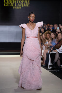Pendant la fashion week de mars 2022 a Paris, Christophe Guillarme a tenu son defile a l Atelier Renault des Champs Elysees, en presentant sa collection automne-hiver 2022, qui revisite le dressing de Josephine Baker.